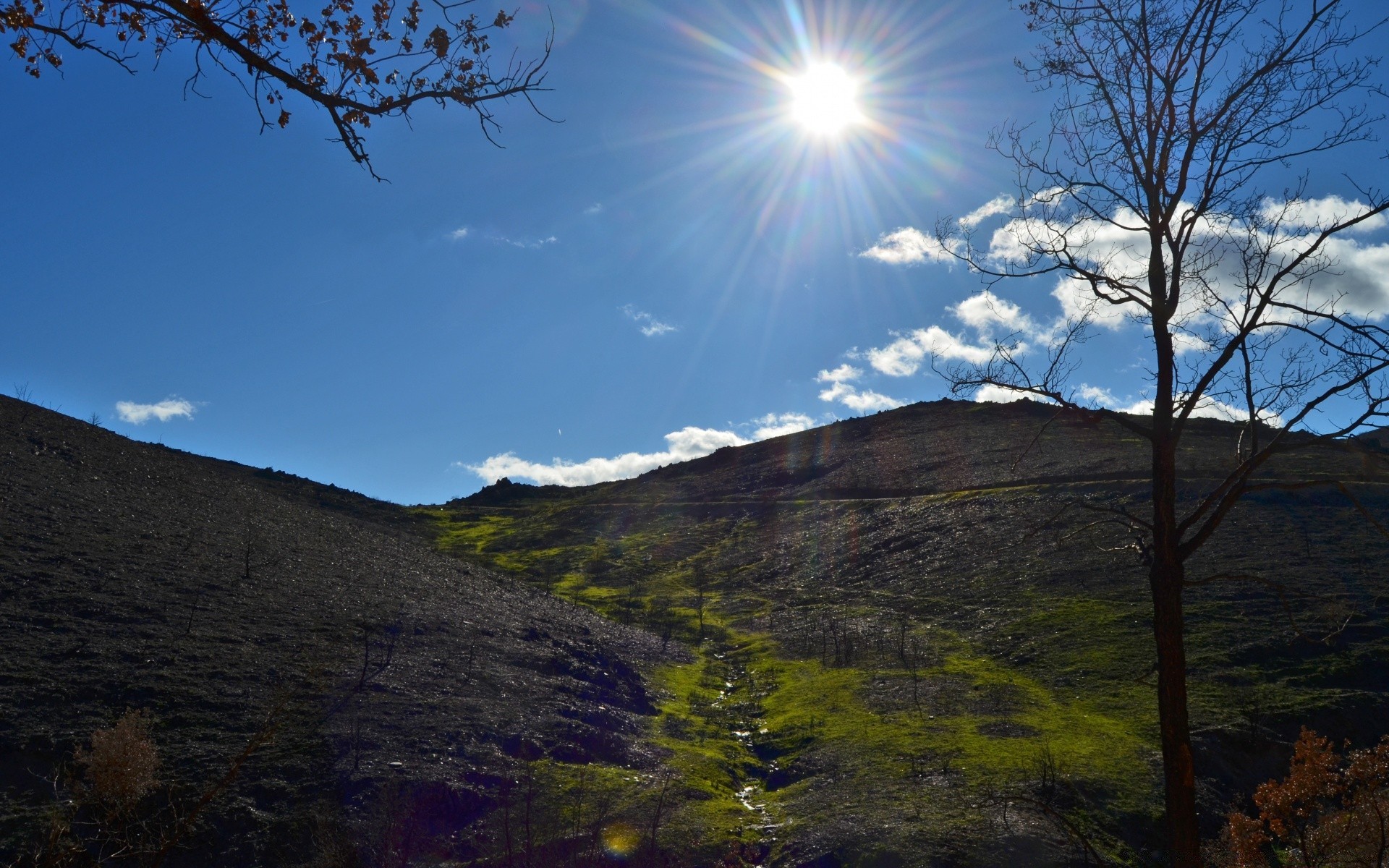 The sun lit up the mountains with yellow light