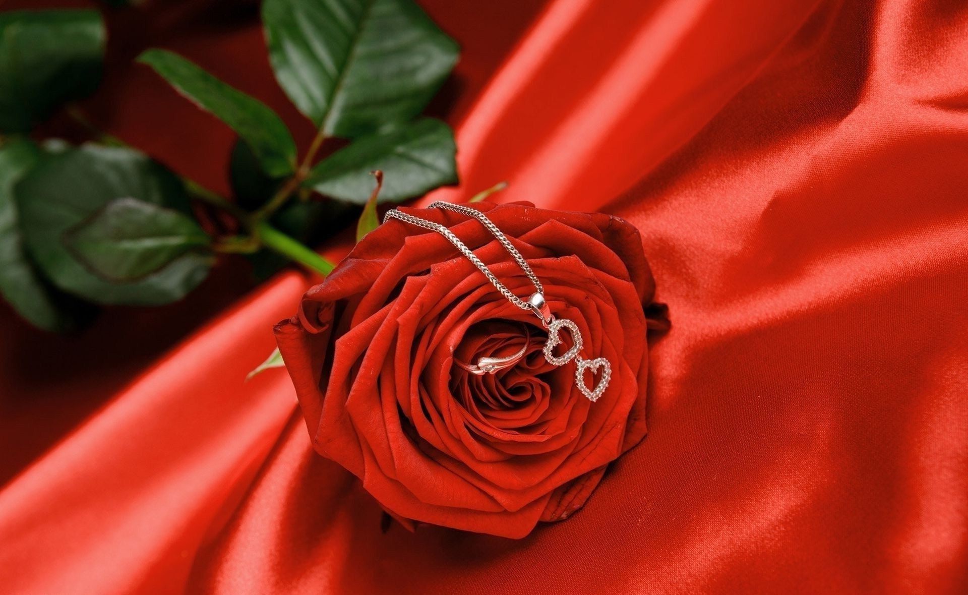 Rose on a red cloth with a pendant