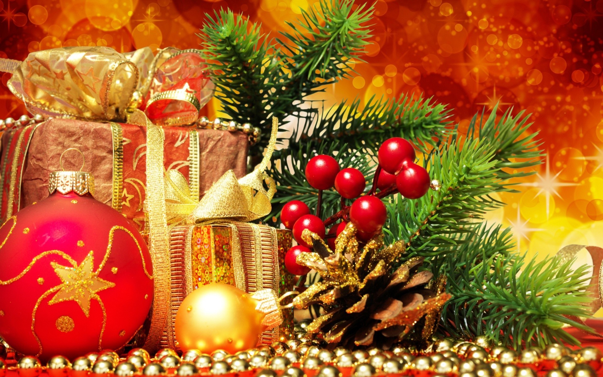 Golden Holiday of Christmas Decorations