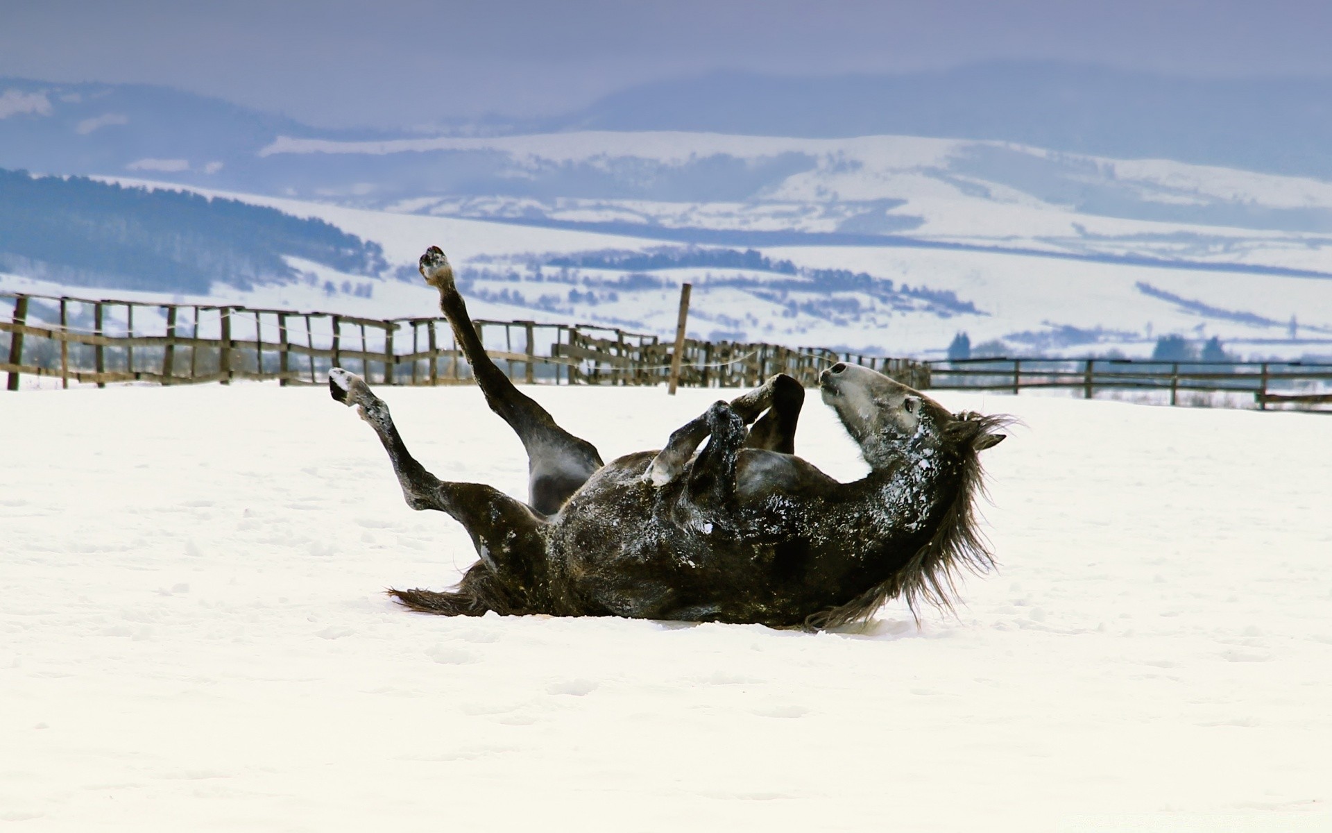 The horse came to the morning watering