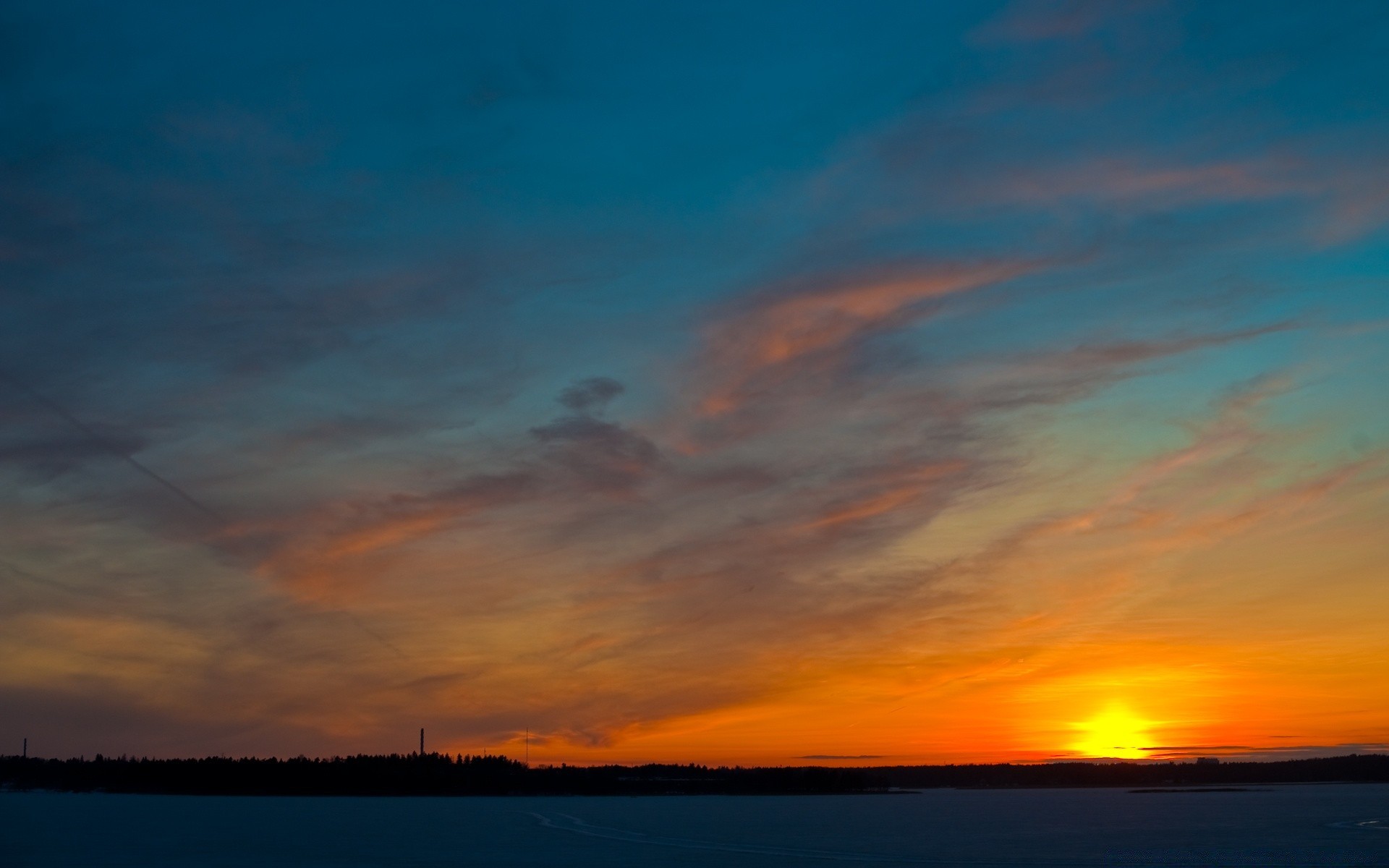 Beautiful summer sunset with blue sky