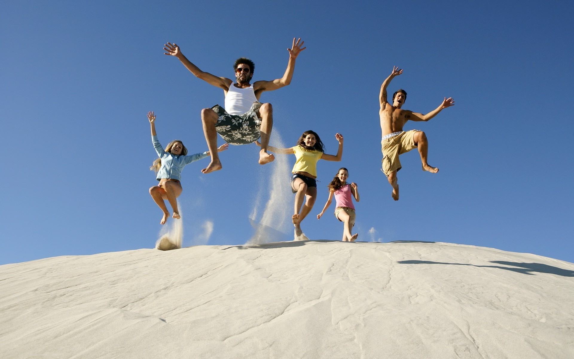 Happy people frozen in a jump
