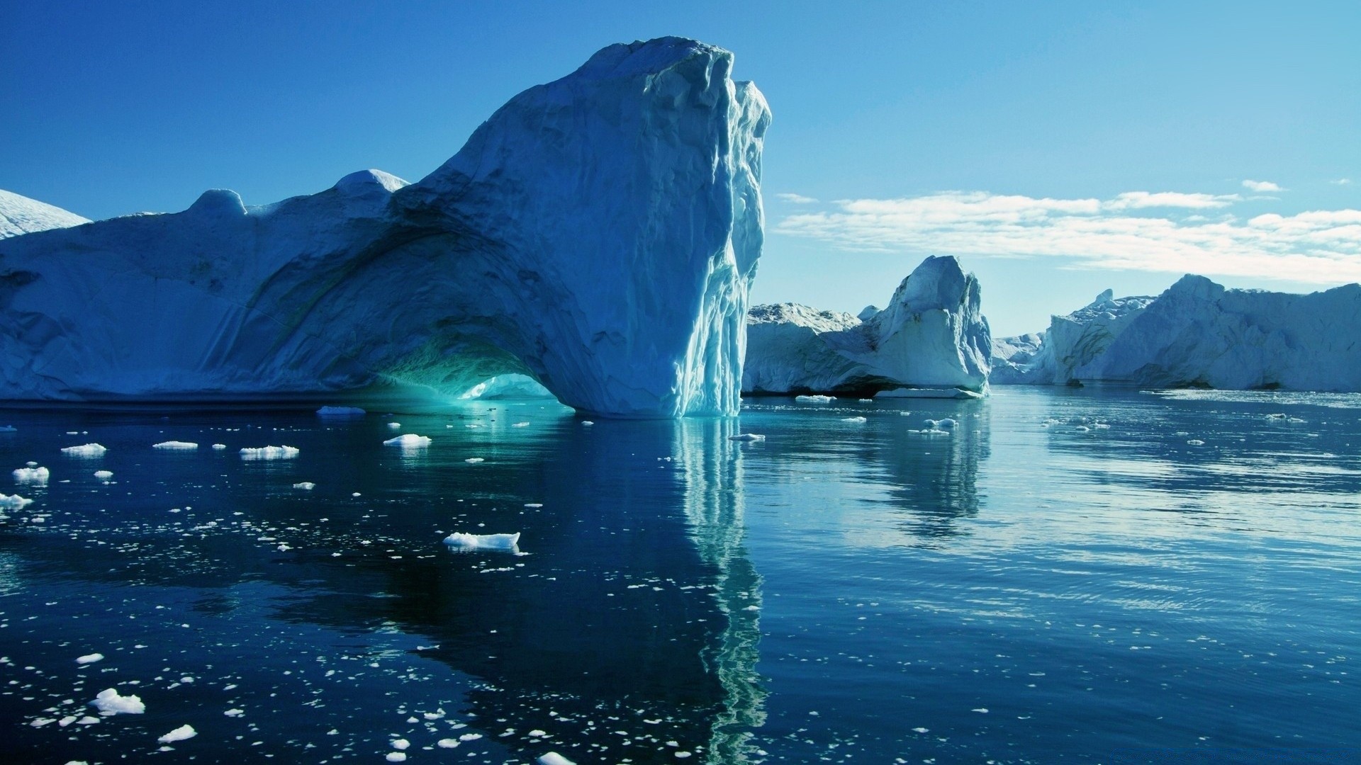 Melting icebergs in Antarctica during the day
