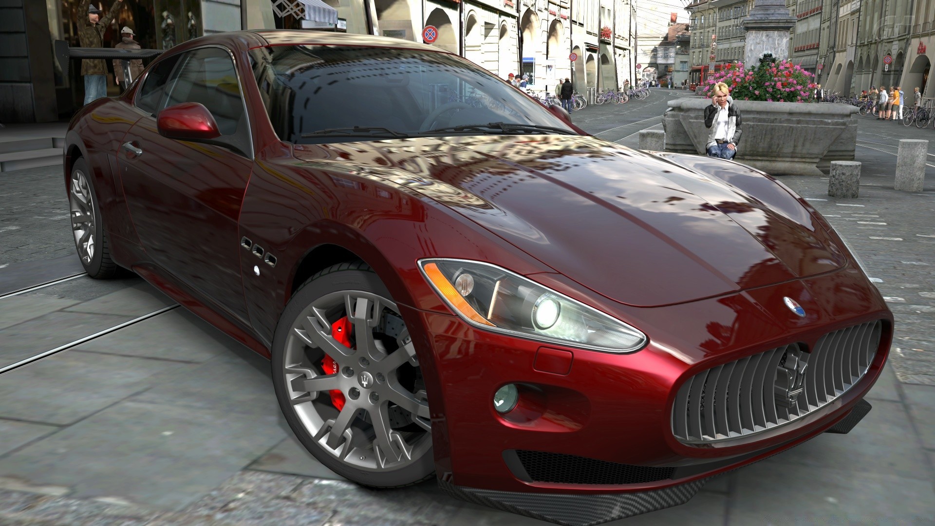 Silver sports car on city streets