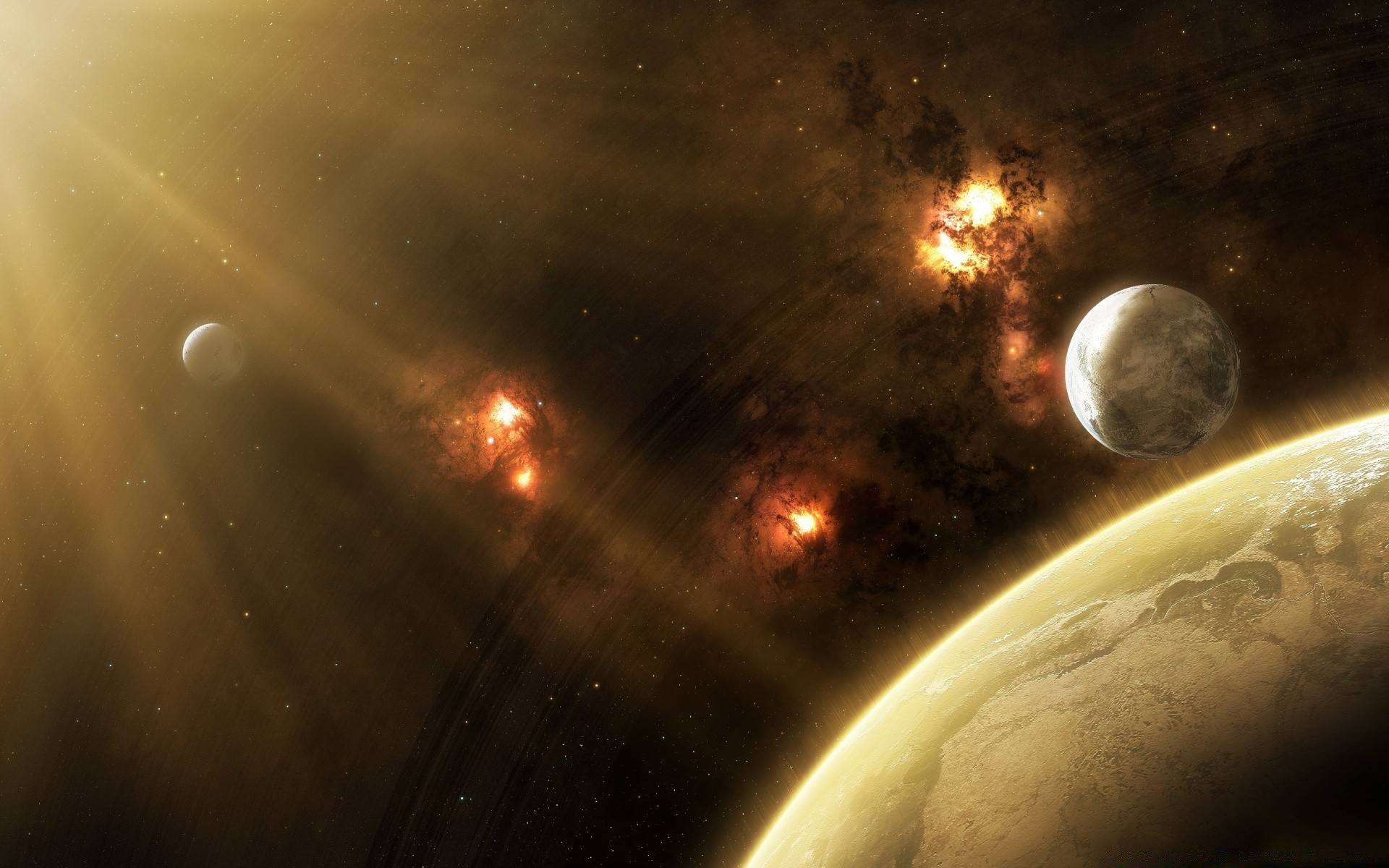 The planets are illuminated by the rays of the sun