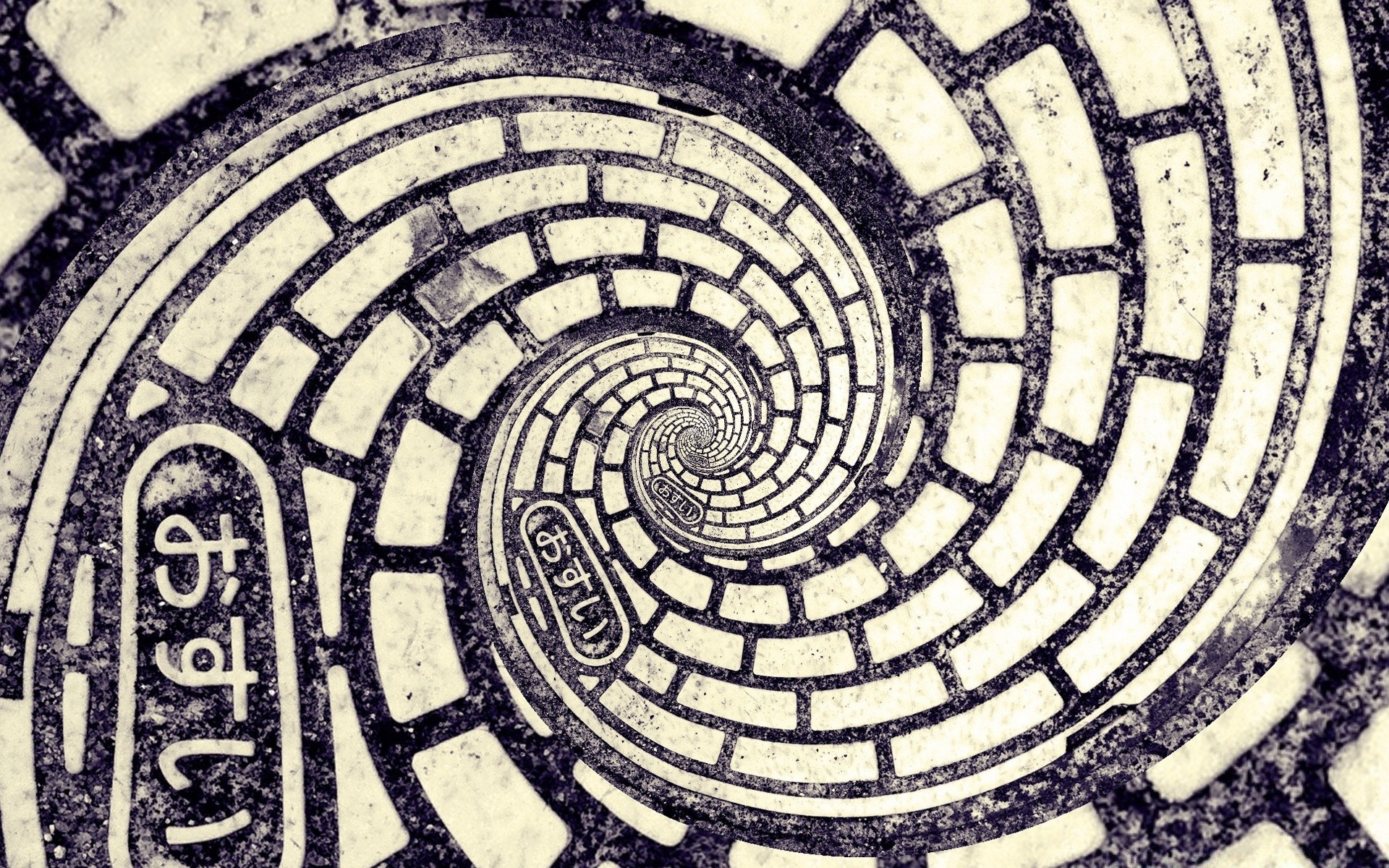 The silhouette of a man on a mountain shining a dark ray into the sky