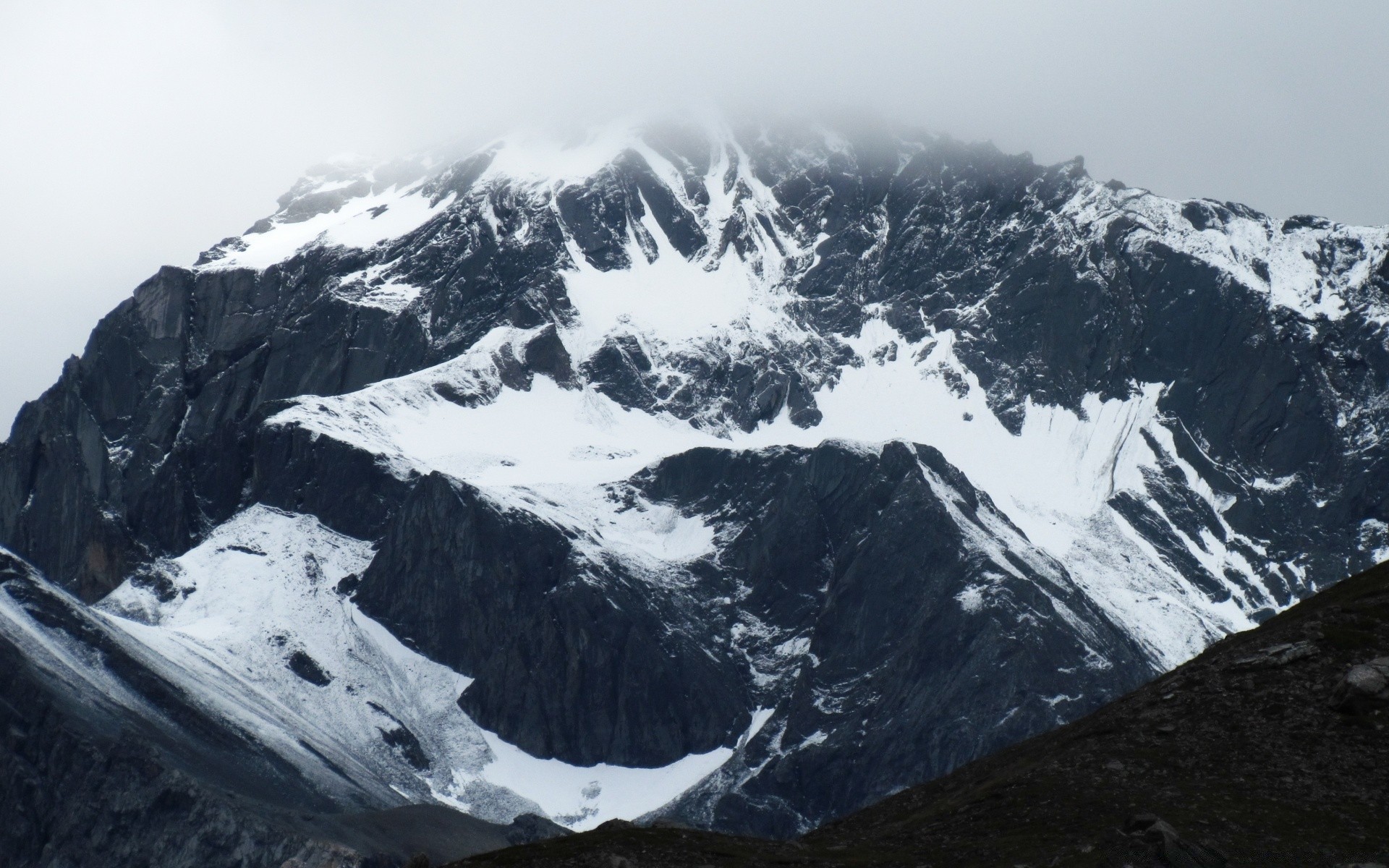 A mountain glacier covered with snow