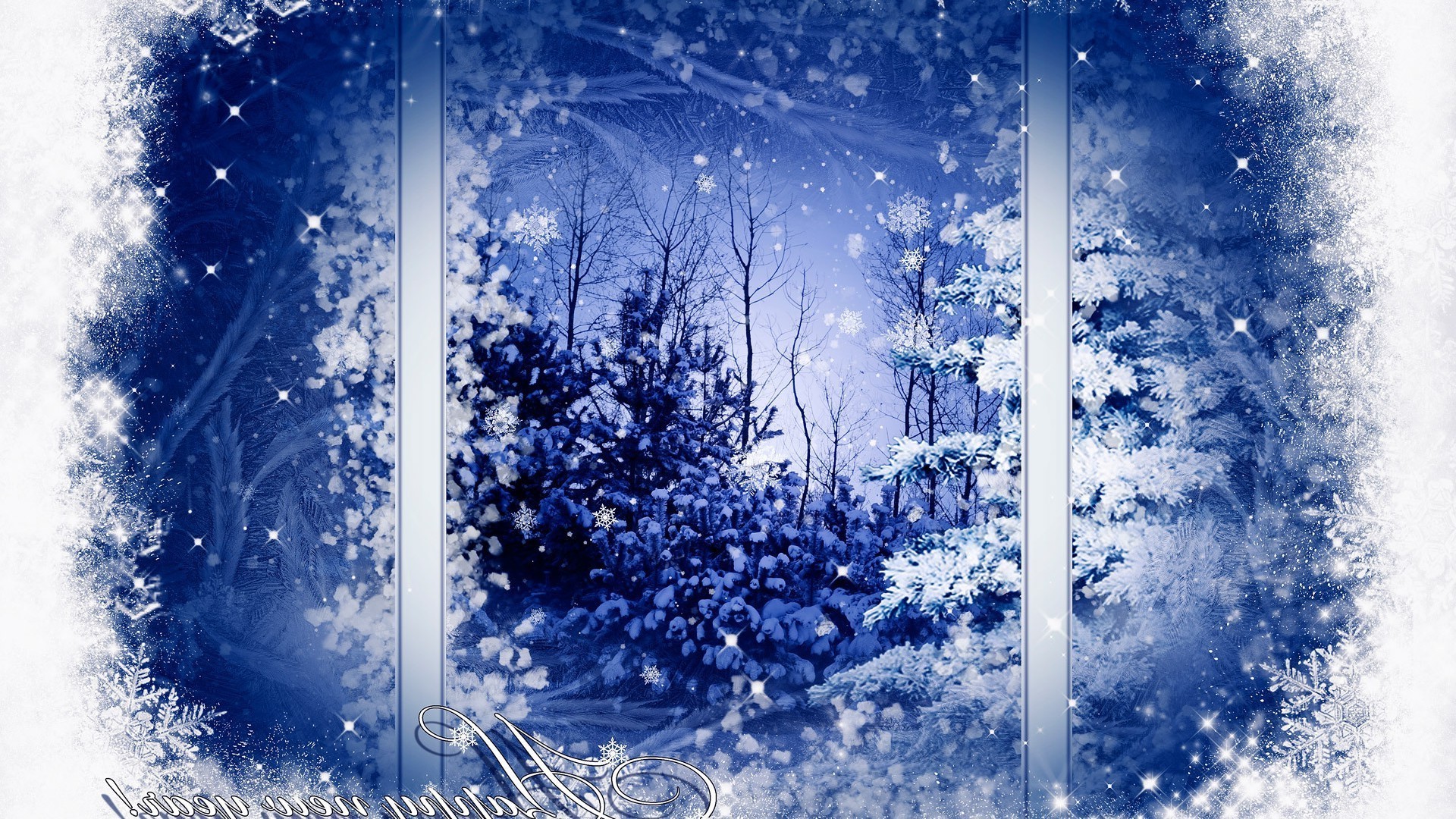 Arctic landscape of a frozen mountain lake in snow-covered shores under the sky with the Northern lights