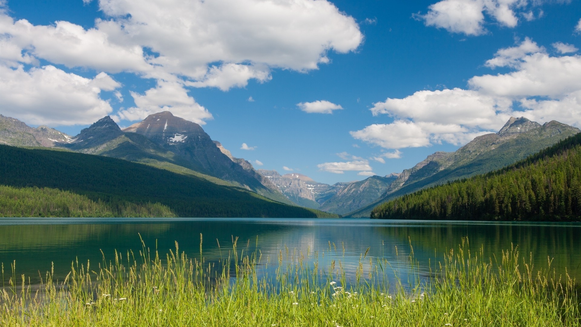 Lake at the foot of high mountains