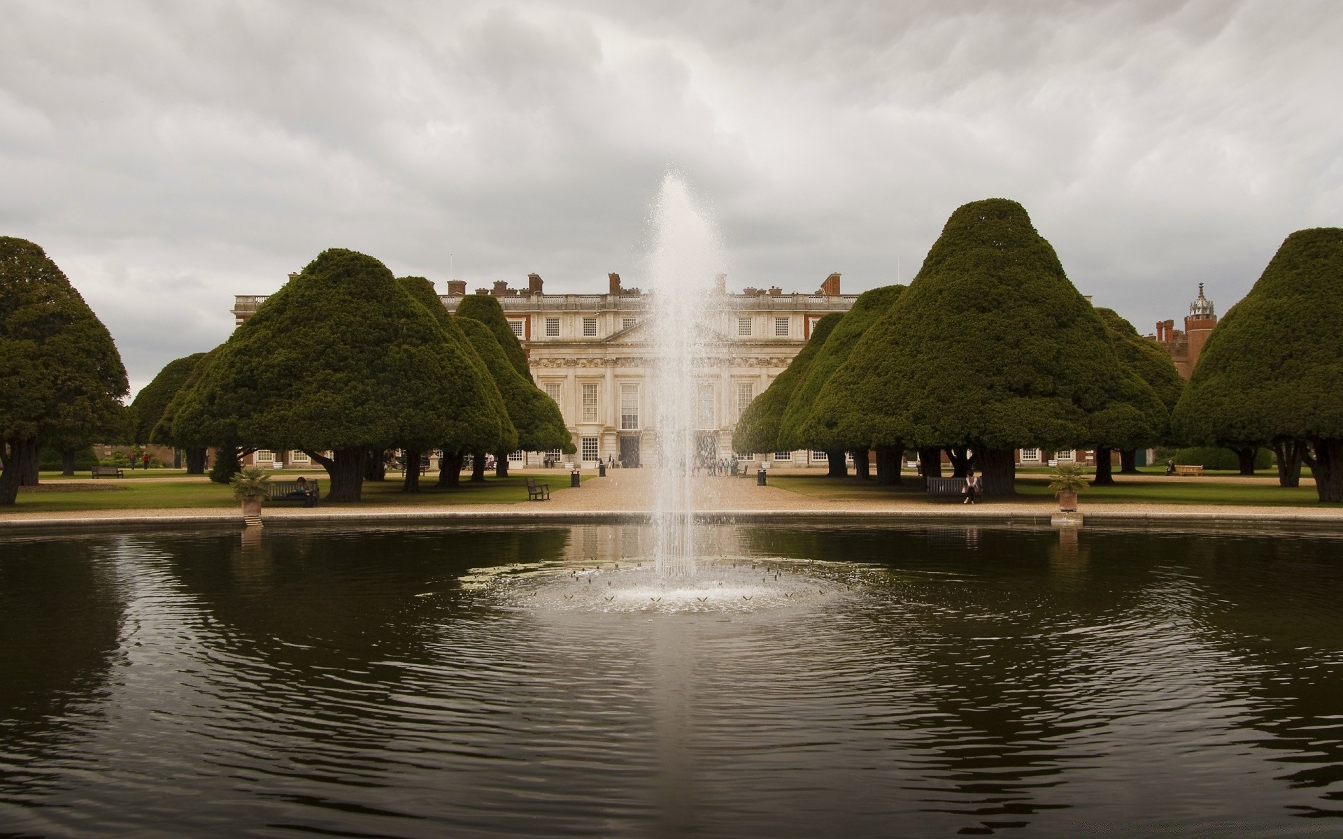 Trees in autumn attire, reflected in the surface of the lake in clear and windless weatherTrees in autumn attire, reflected in the surface of the lake in clear and windless weather