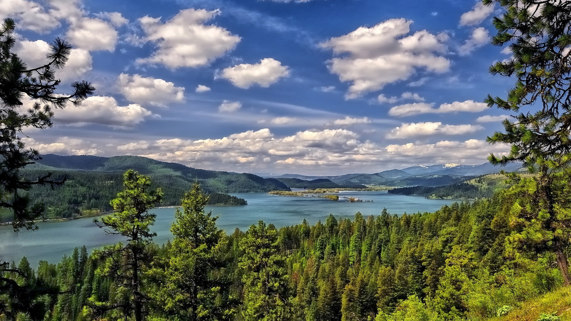 A beautiful lake in the mountains surrounded by fir treesA beautiful lake in the mountains surrounded by fir trees