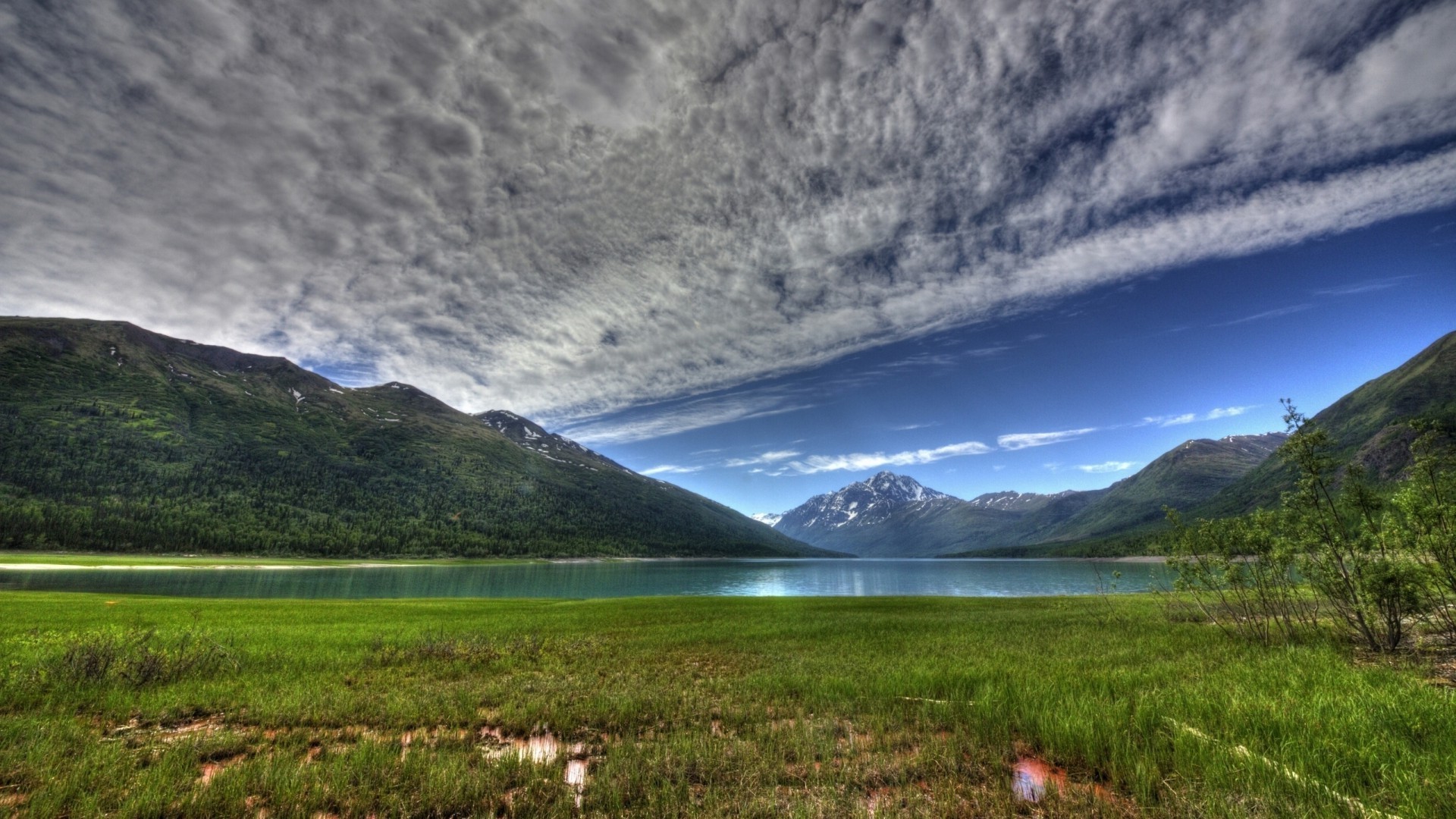 Mountain lake under the blue sky