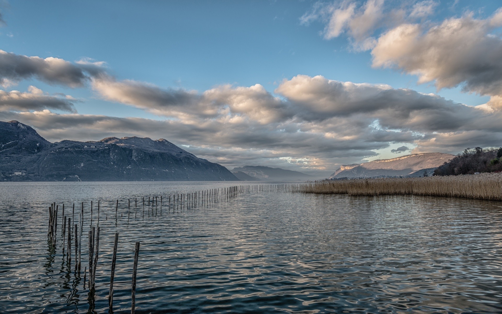 The fiery sunset is reflected in the water surface of the lakeThe fiery sunset is reflected in the water surface of the lake
