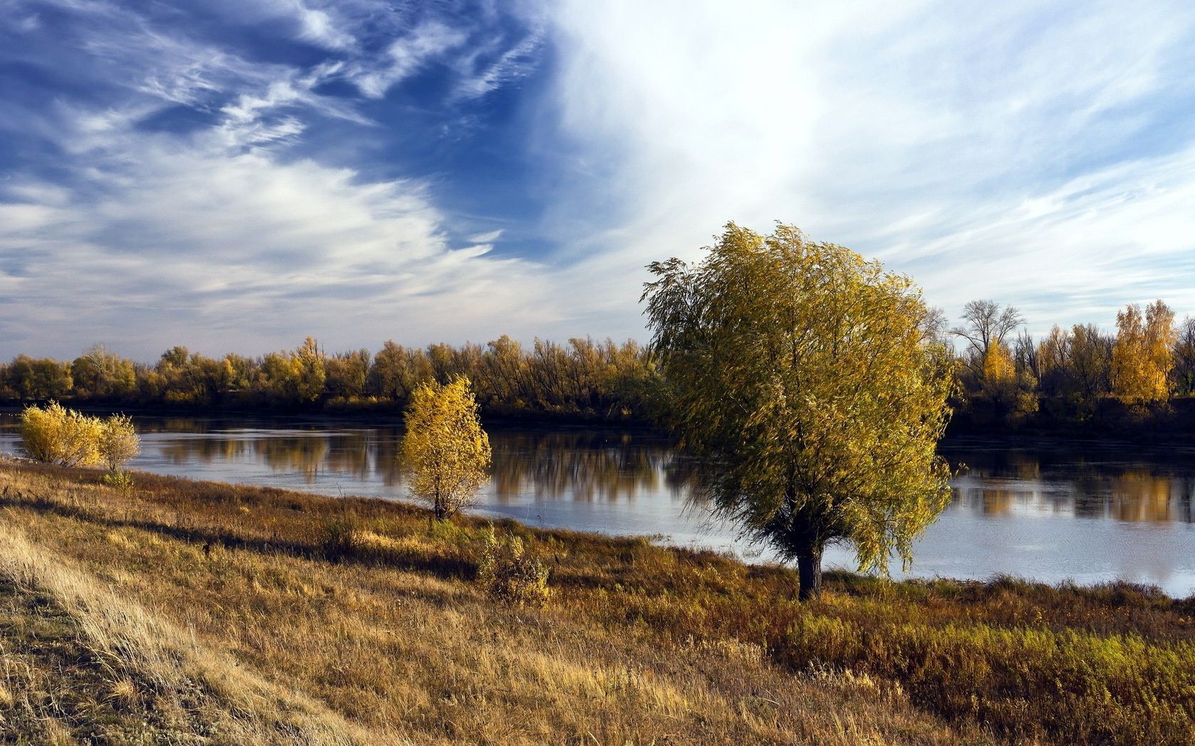 Autumn landscape on the river bank