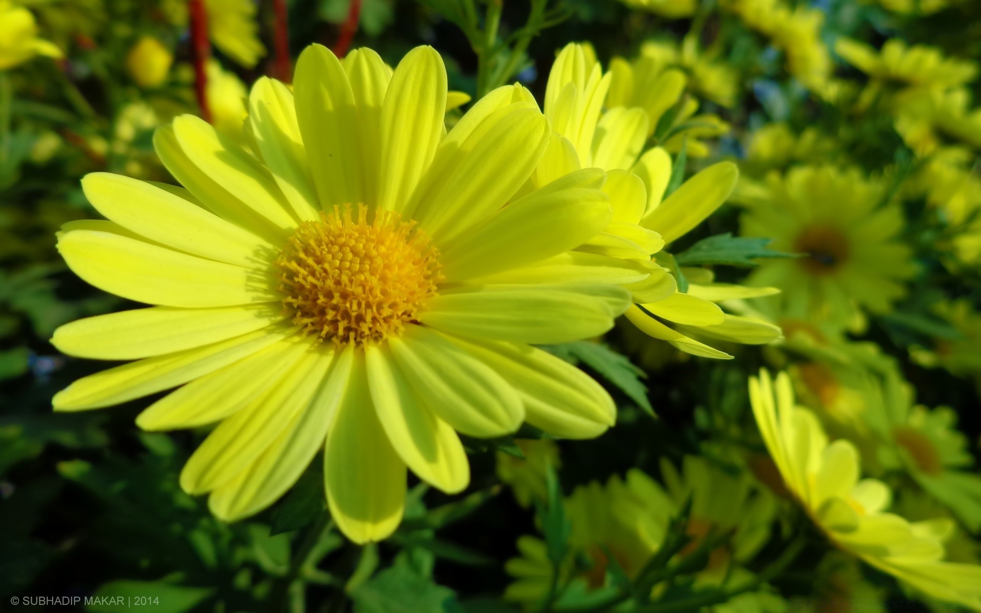 Chamomile in a large field