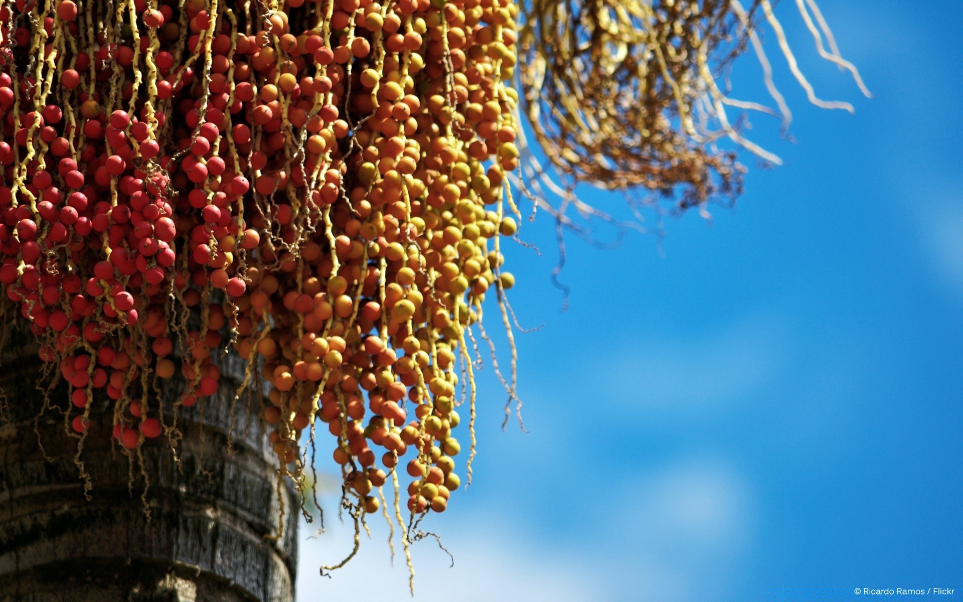 Fruits of fruits hanging in branches against the sky backgroundFruits of fruits hanging in branches against the sky background
