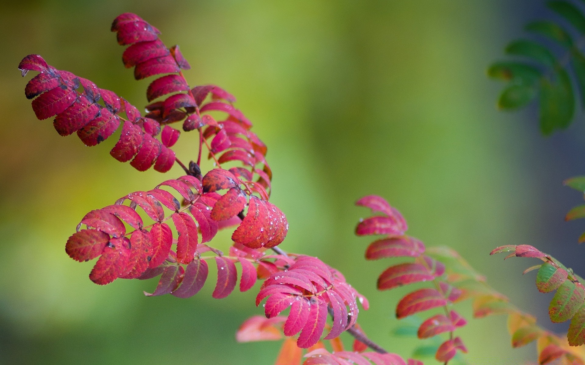 Trees with red leaves and the rays of the autumn sun breaking through the fogTrees with red leaves and the rays of the autumn sun breaking through the fog
