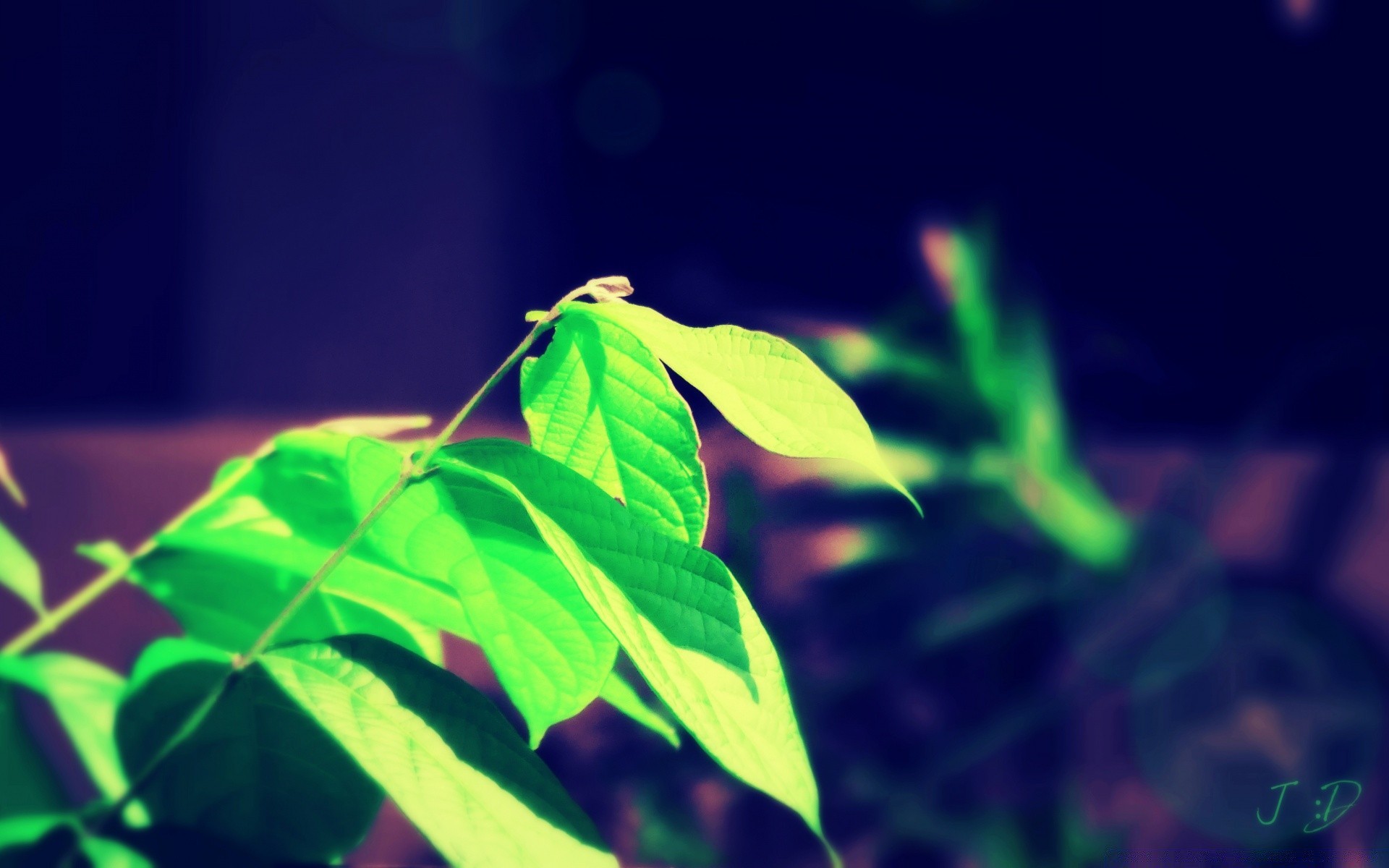 Green leaves on a purple background