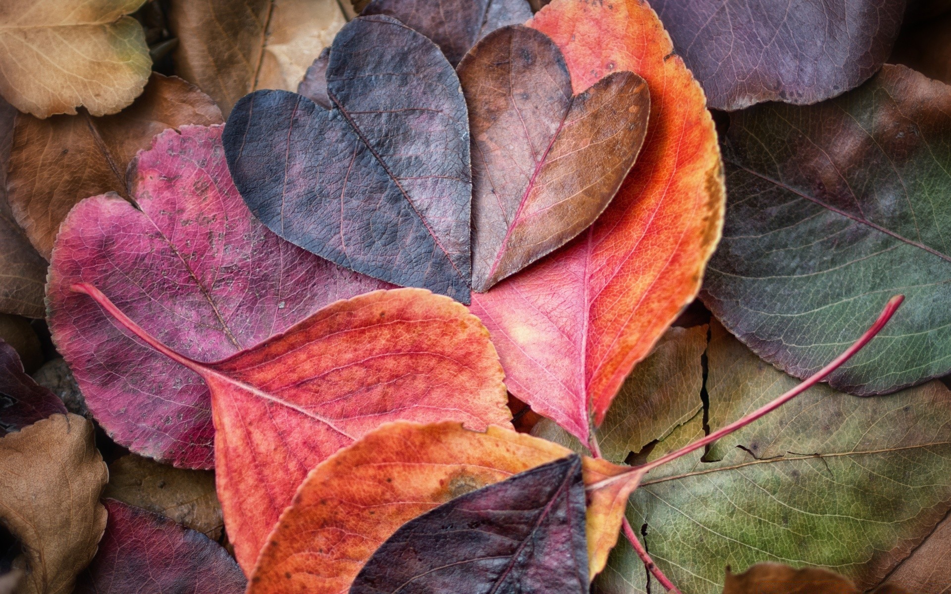 Autumn multicolored leaves of bard, crimson, brown flowersAutumn multicolored leaves of bard, crimson, brown flowers