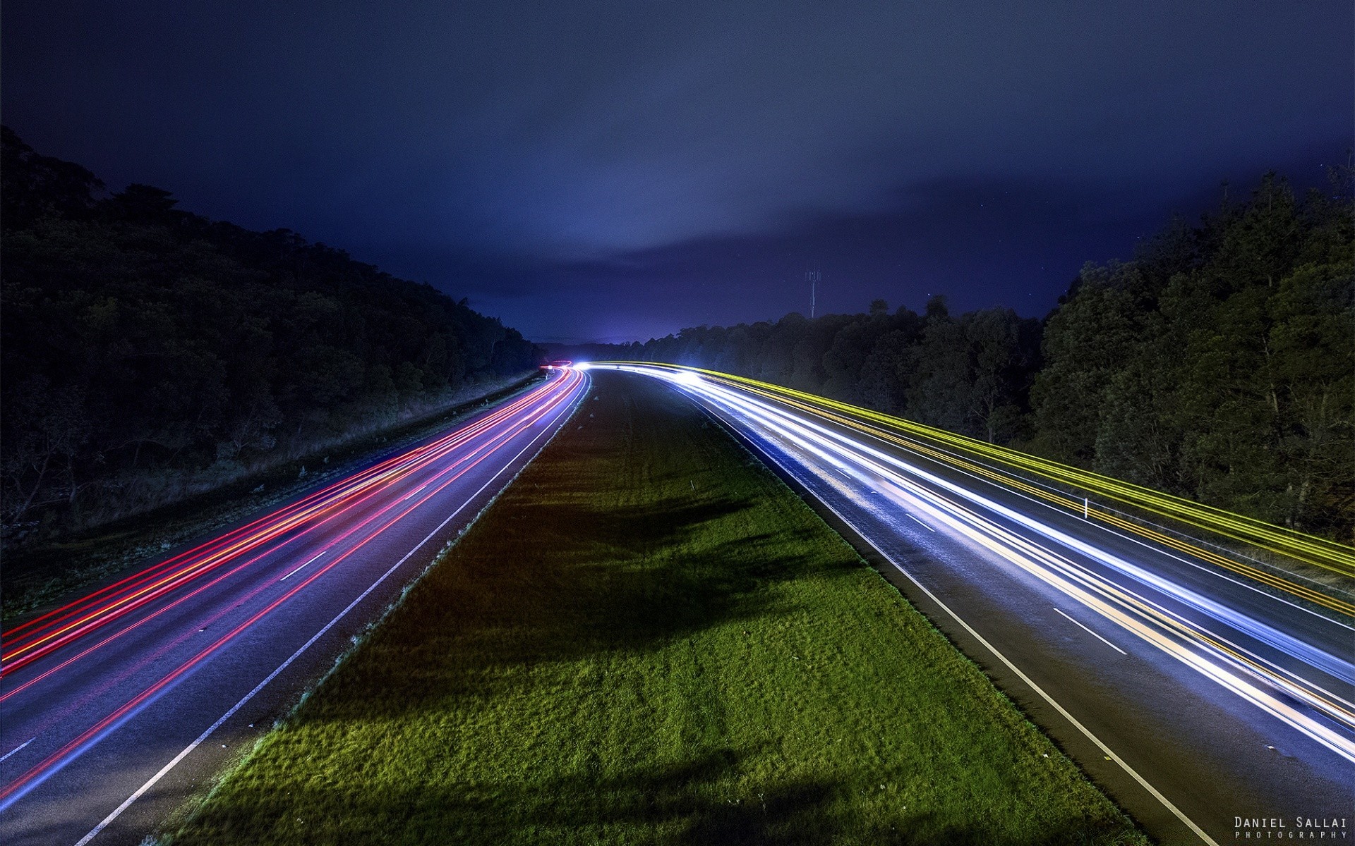Photo of the night highway on the background of the night sky