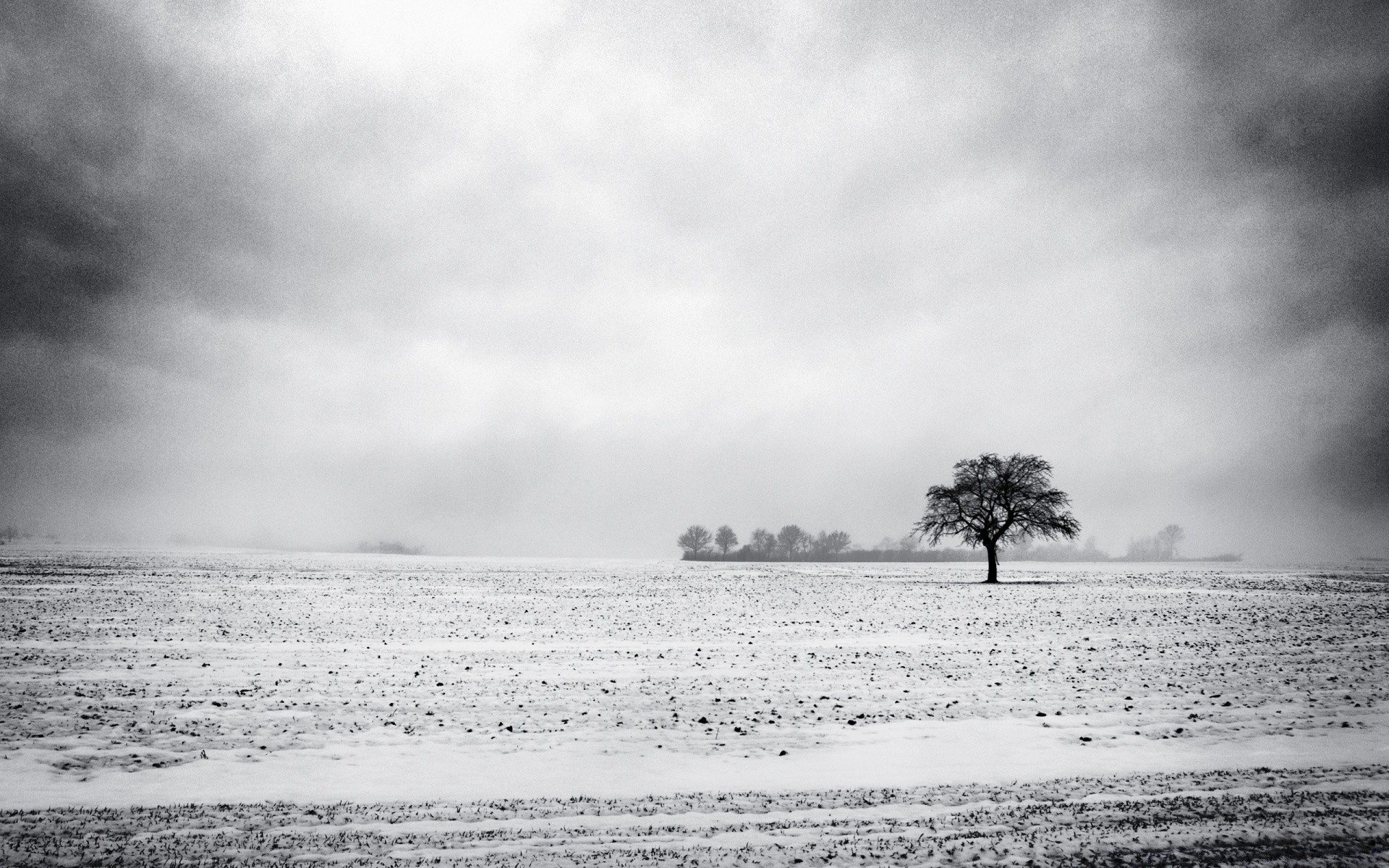 A lonely tree with a nest on the background of winter natureA lonely tree with a nest on the background of winter nature