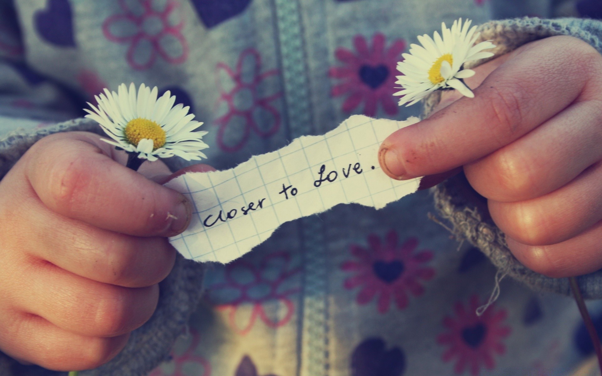 A child holds a note and daisies