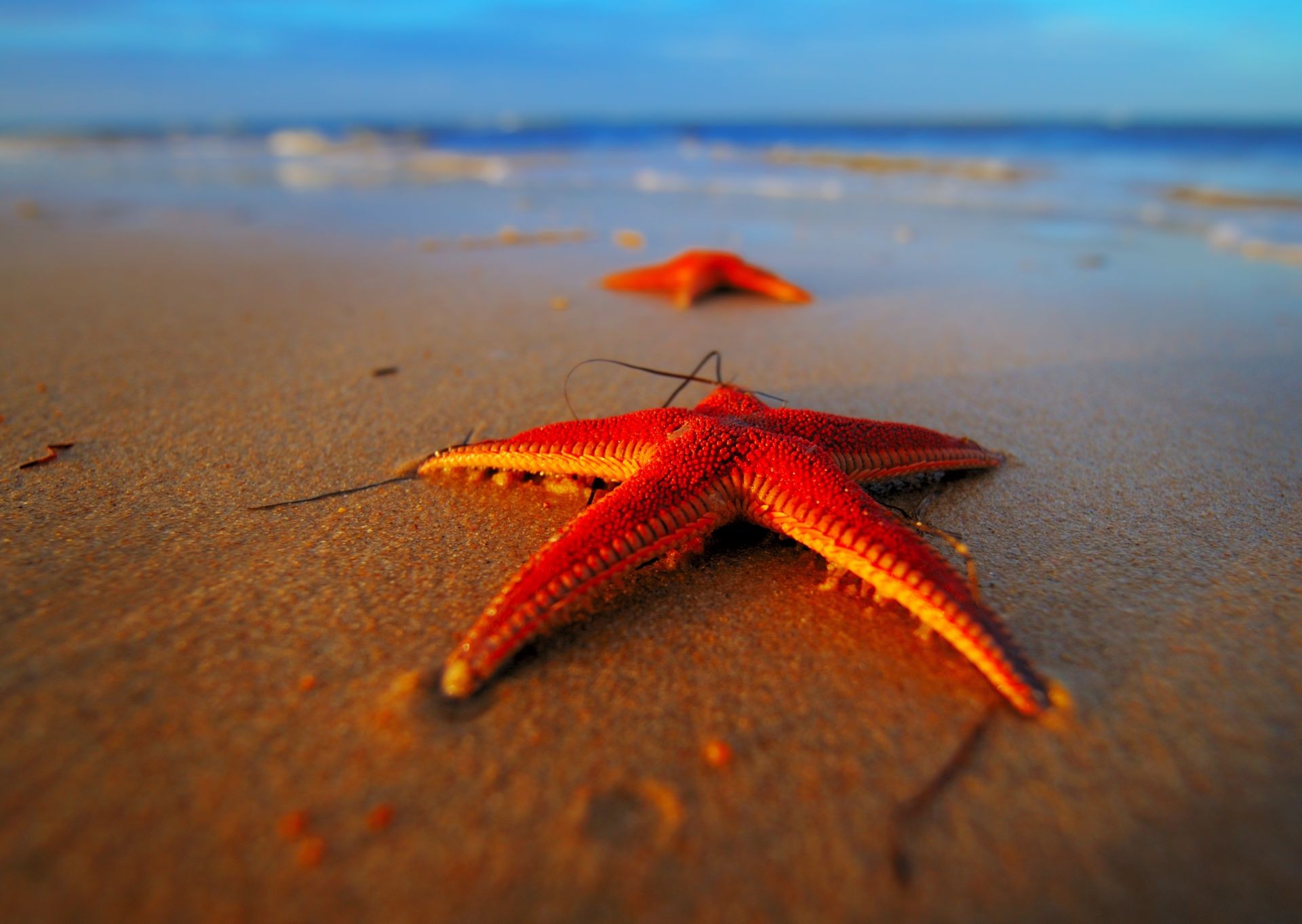 Macro photography of a starfish on the beach. seashoreMacro photography of a starfish on the beach. Seashore