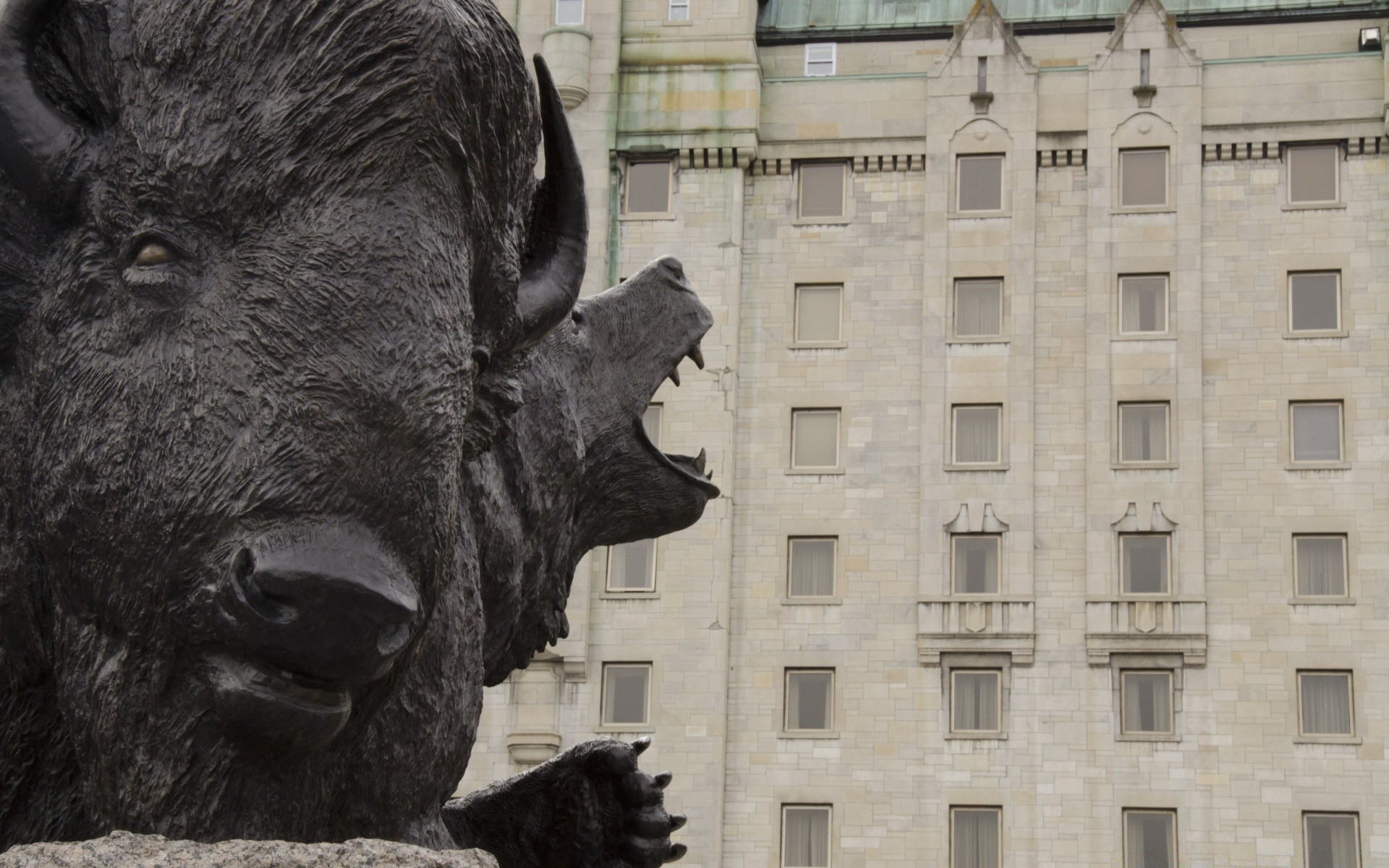 City house on the background of a bull sculpture