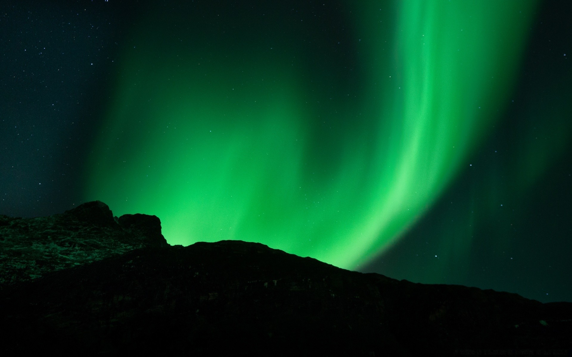 Fantastic mountain in the middle of the forest on the background of the starry sky