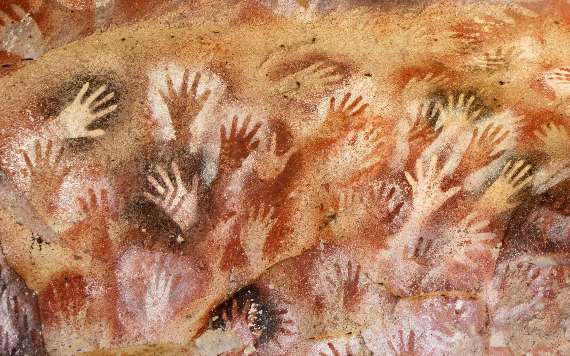 Hand prints on the rock in close-up
