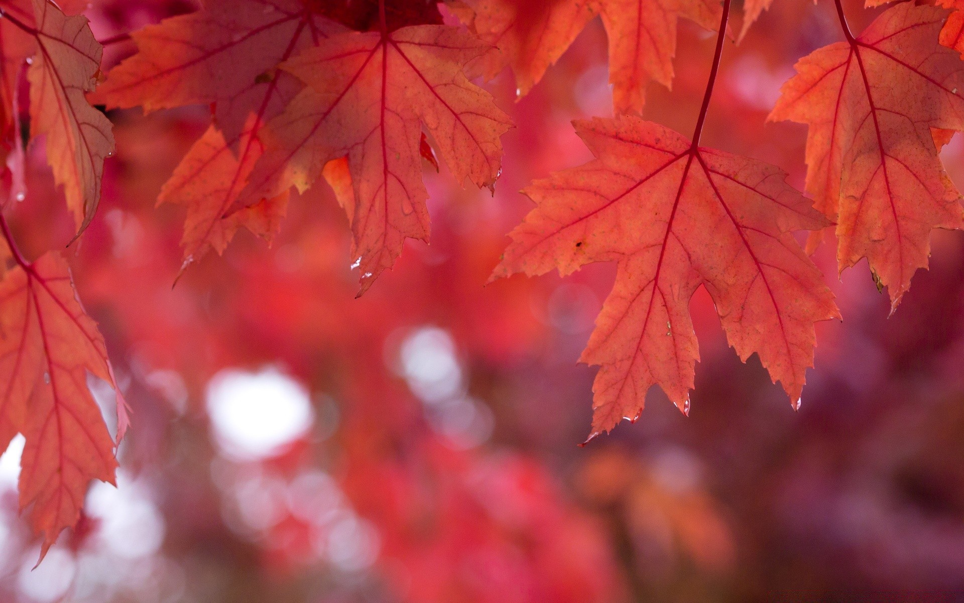Autumn; a man rides a bicycle, an autumn leaf sprinkled the road