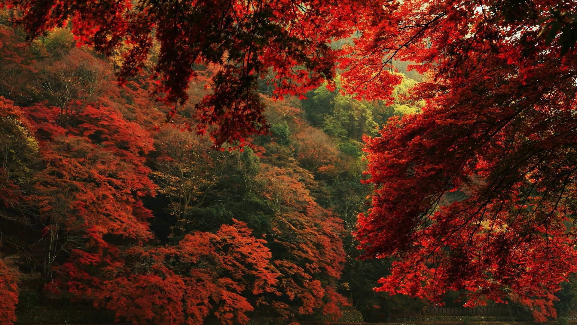 Autumn multicolored leaves of bard, crimson, brown flowers