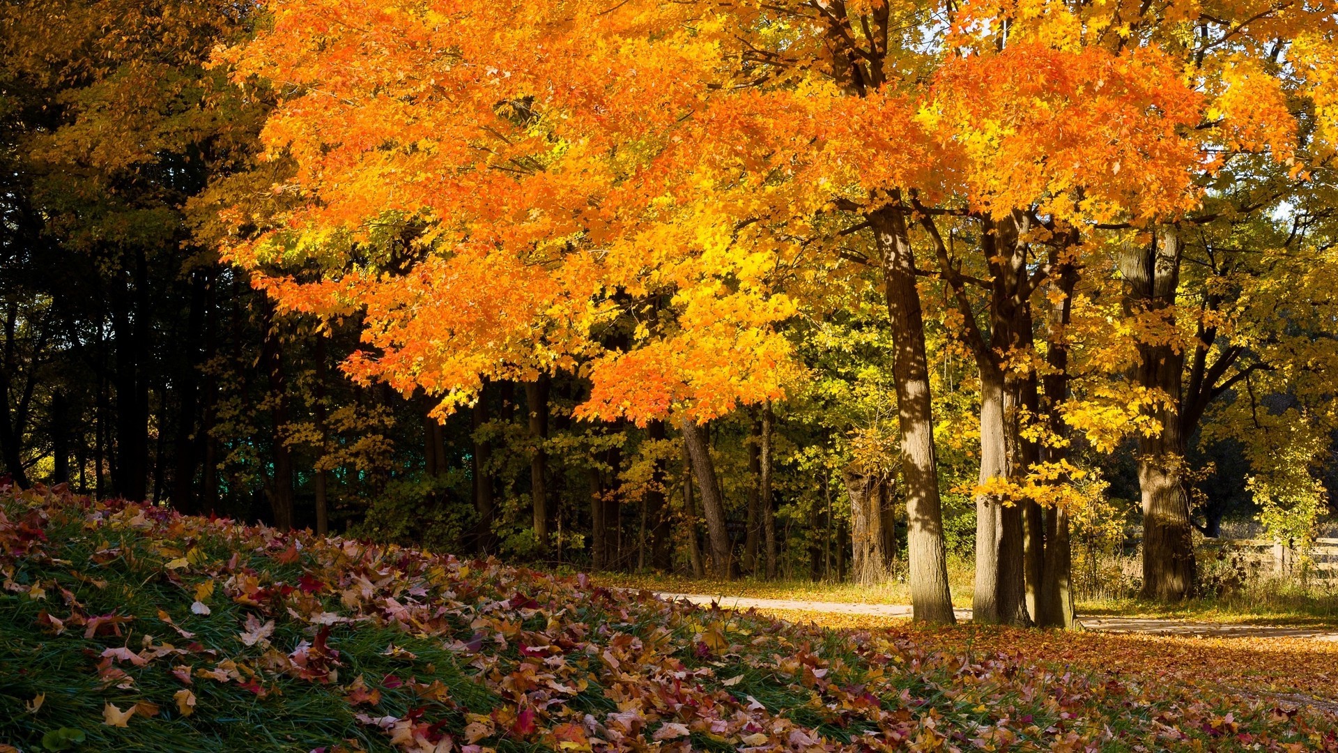 Autumn trees are crowding in the forest and talking, making noise with their foliage
