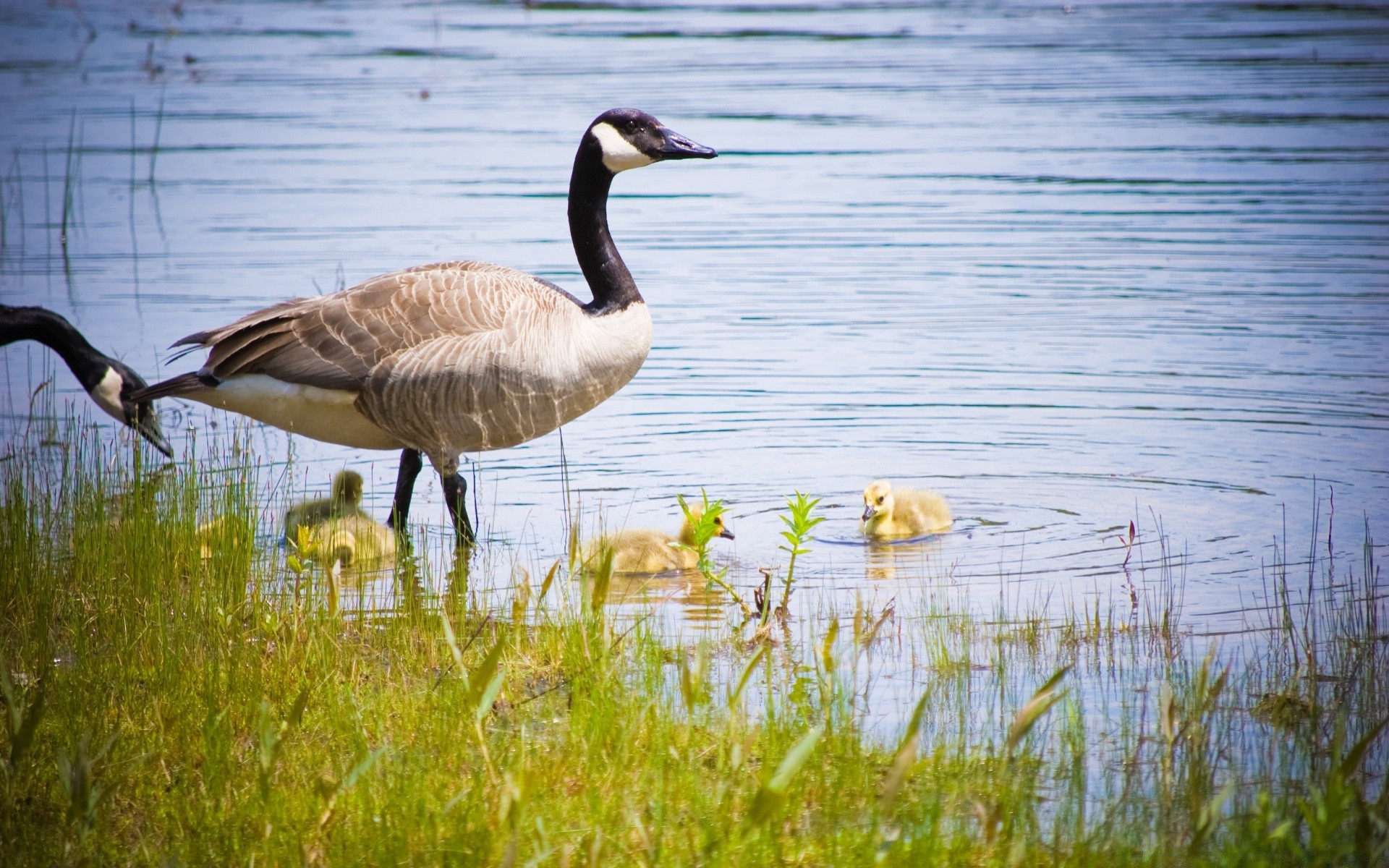 Duck with ducklings in the wild
