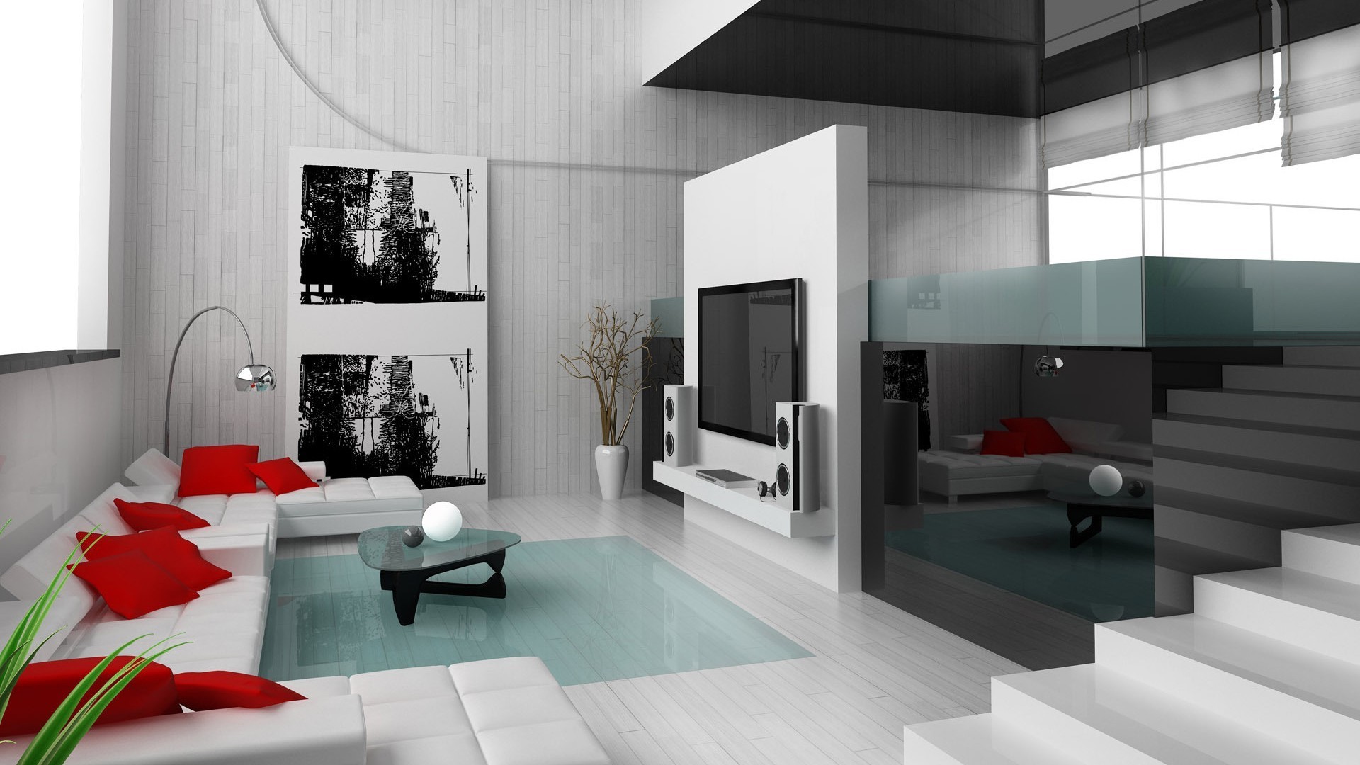 In a two-storey house in the living room on the ground floor, you can relax on the floor