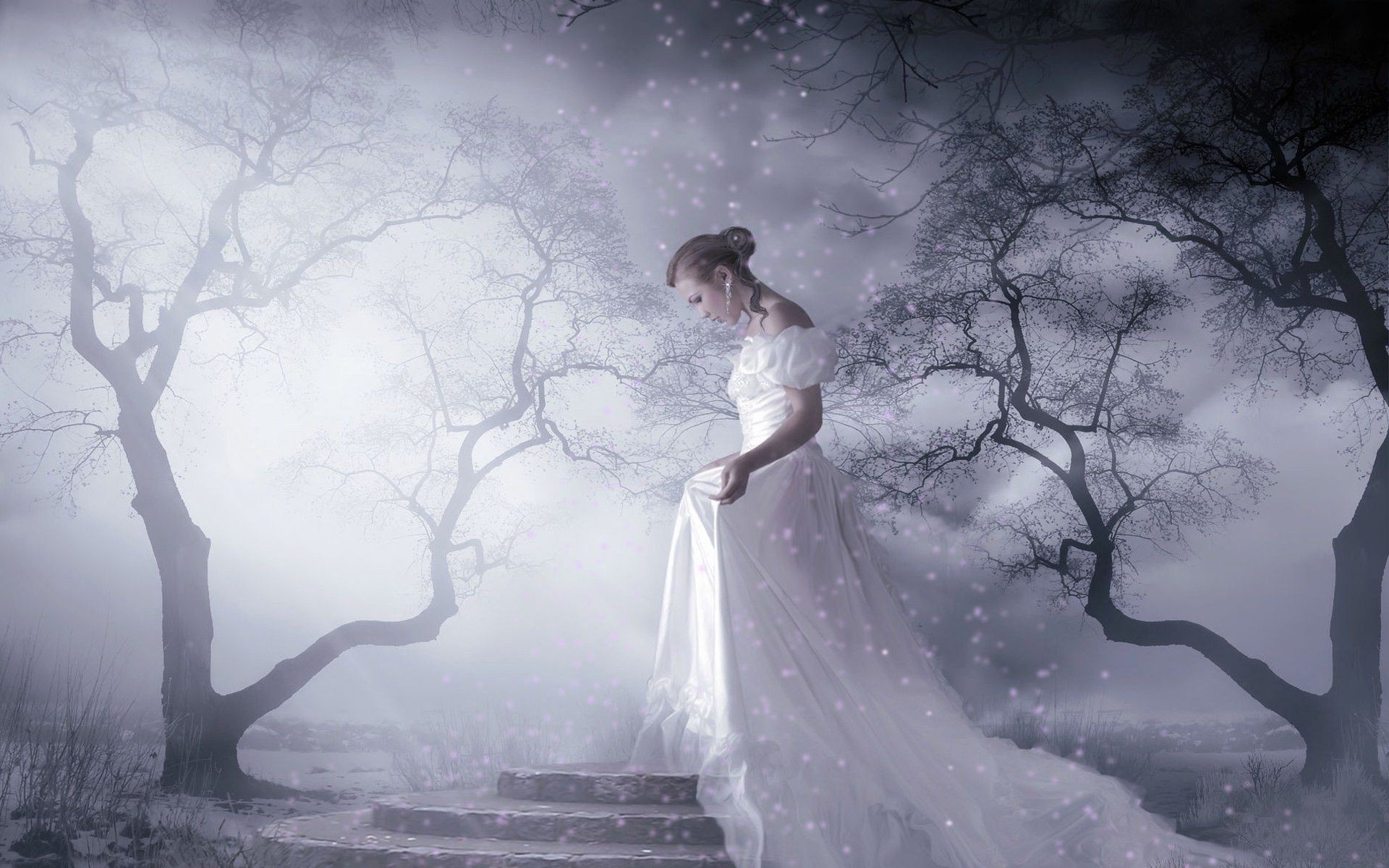 Making a deer on the background of a forest in the fogMaking a deer on the background of a forest in the fog