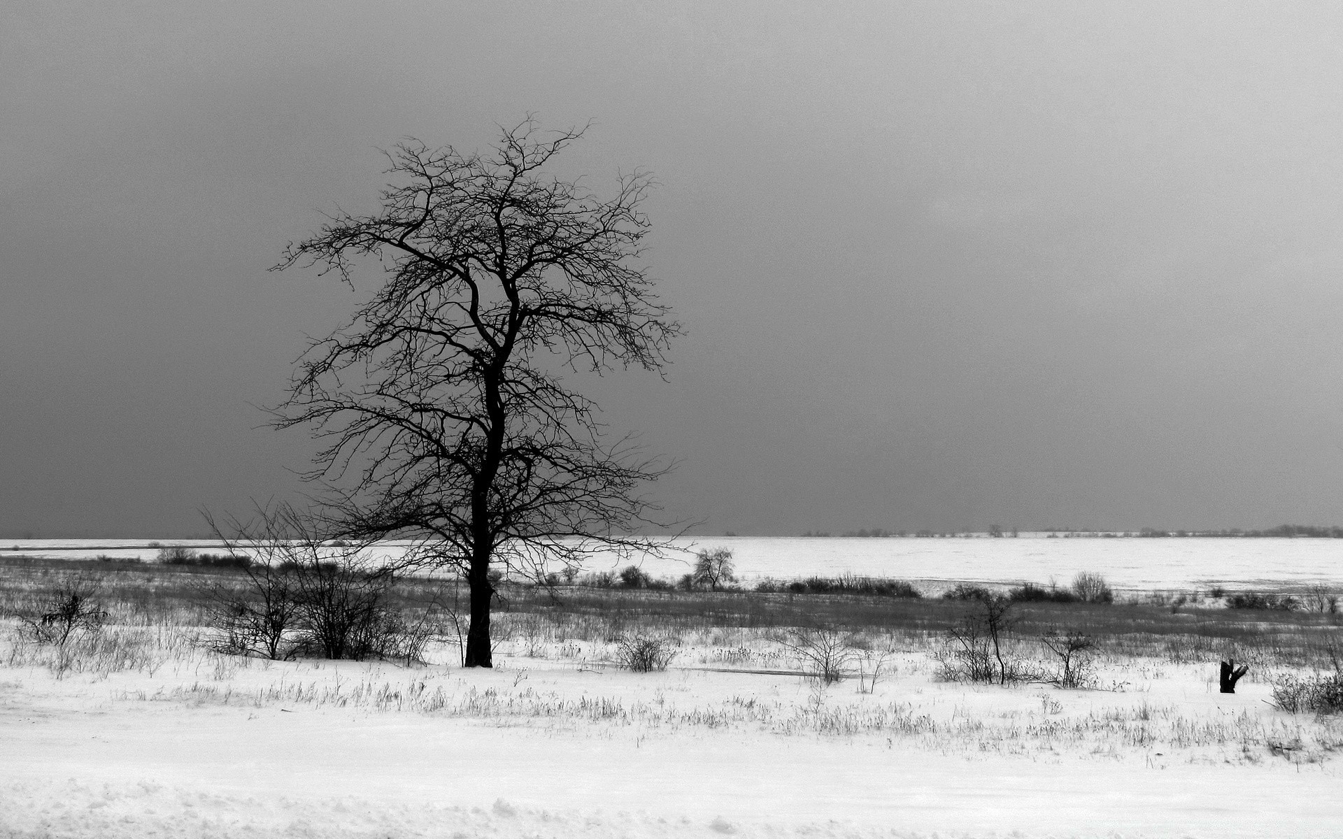 A tree against the background of a winter landscape is beautifulA tree against the background of a winter landscape is beautiful