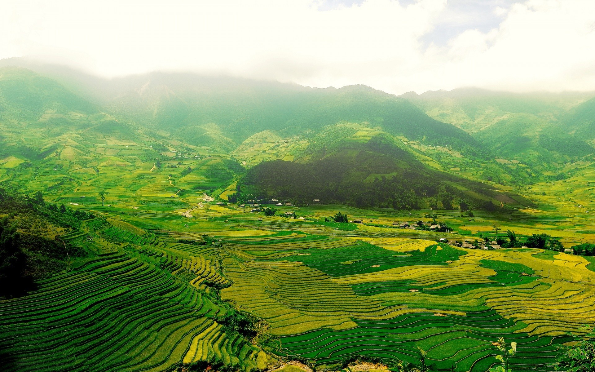 Green mountains with stripes