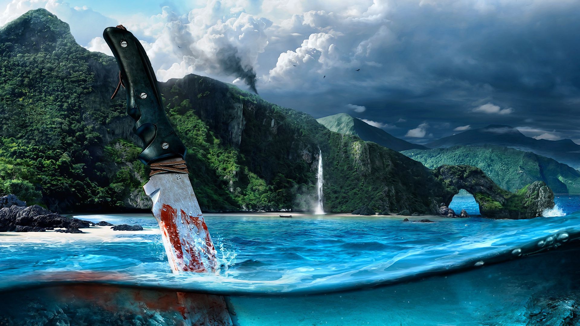 Reflection of clouds, mountain peaks and trees in the surface of the lake on a windless day