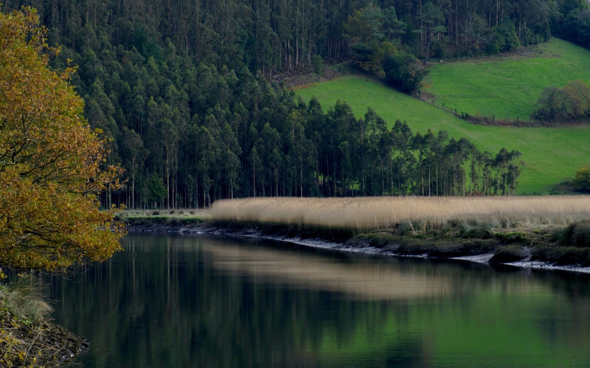 Wonderful, bright, autumn, colorful trees on the background of the lake. The autumn mood is felt