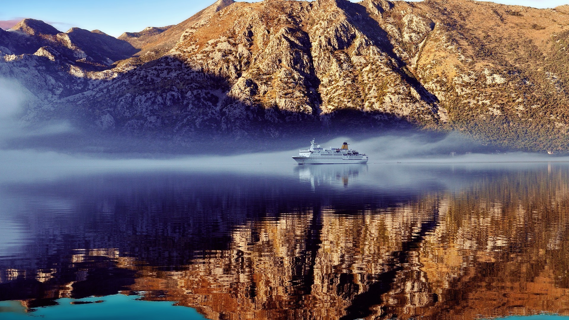 Yellow purple flowers next to the stones at the foot of the mountain on the background of a non-foggy cloud