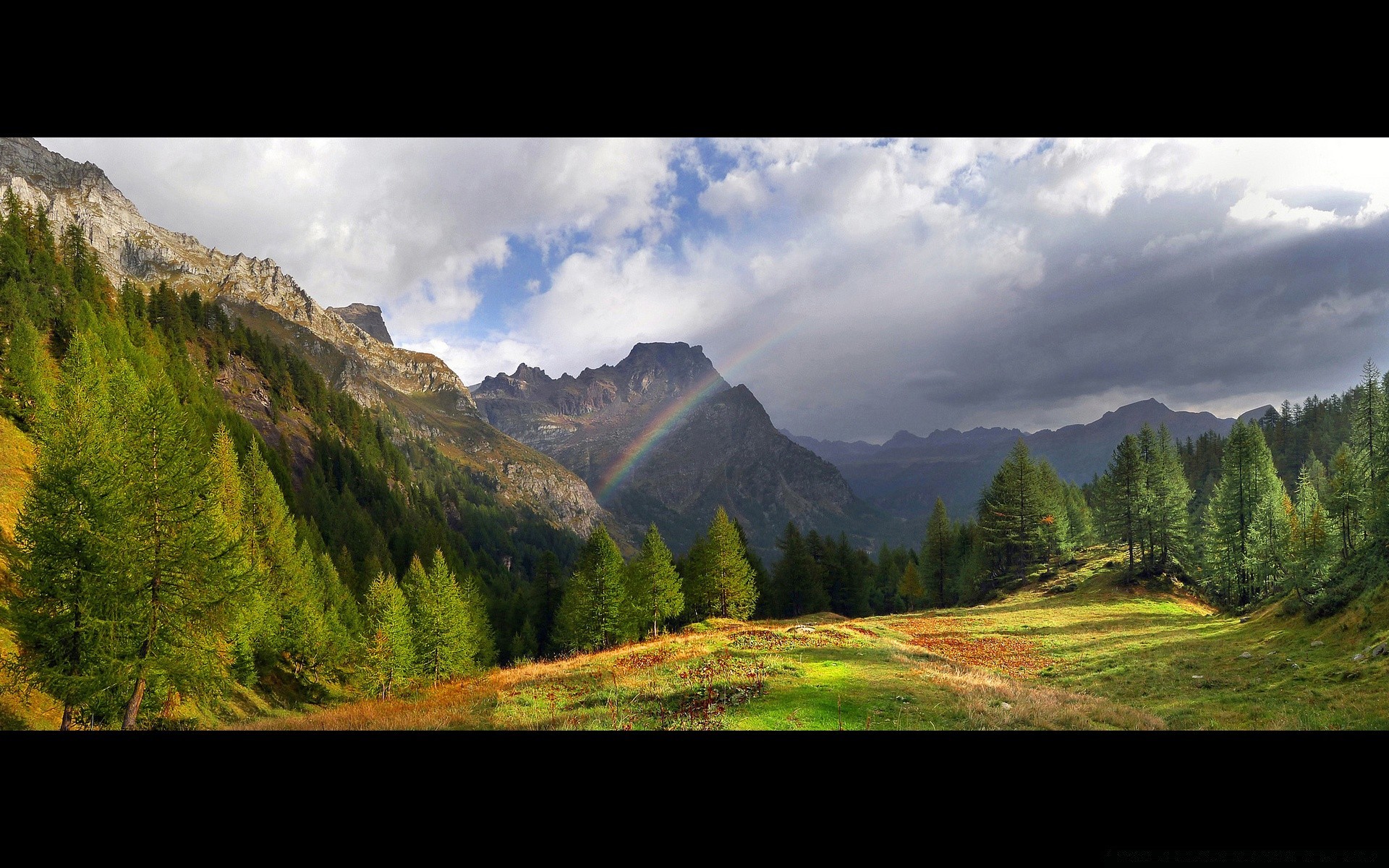 A small house with a snow-covered roof at the foot of the mountain and a blue sky with white clouds
