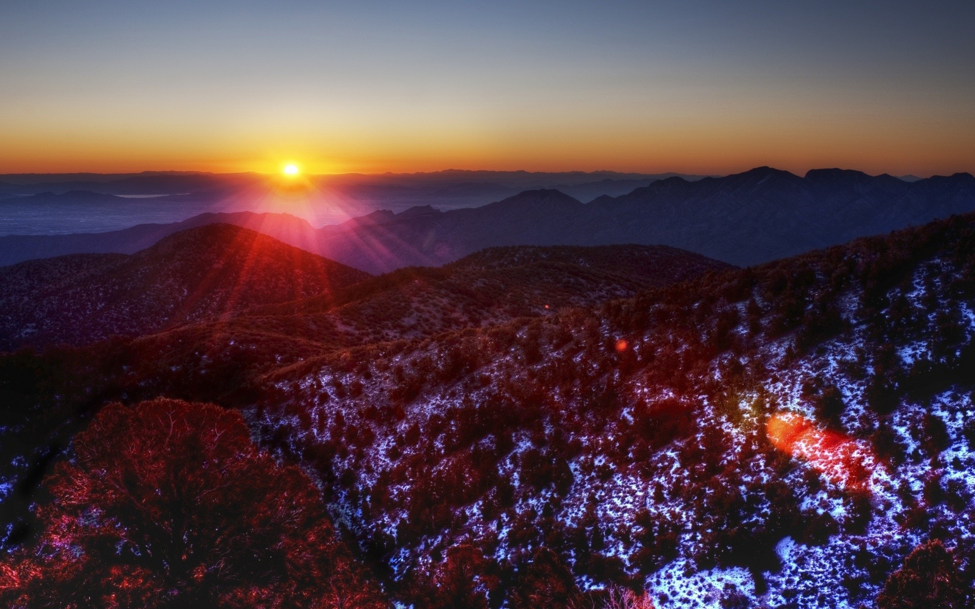 Landscape of sunrises and sunsets in the mountainsLandscape of sunrises and sunsets in the mountains