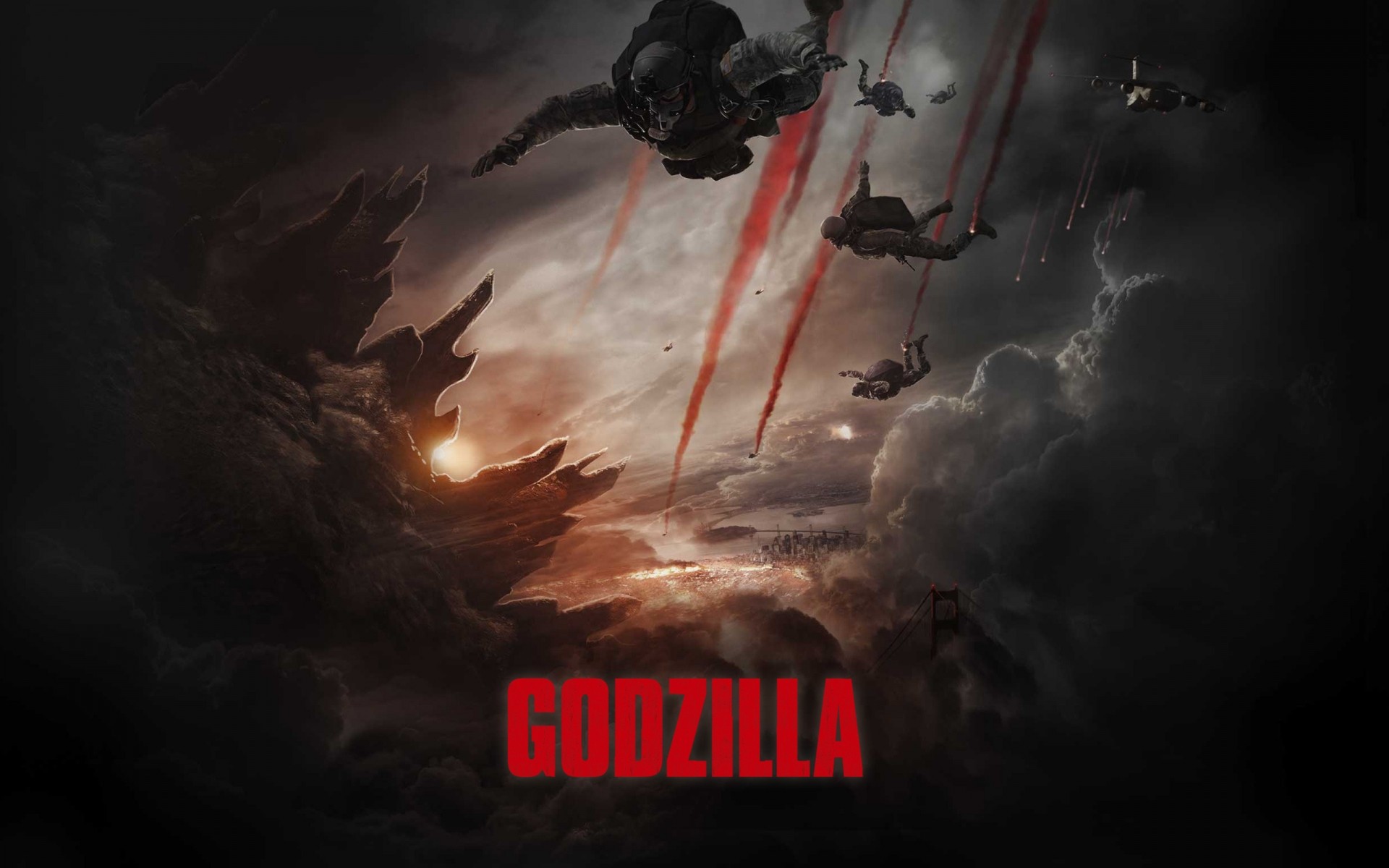 A poster of a movie about Titans with the image of a warrior and a fire-breathing monster