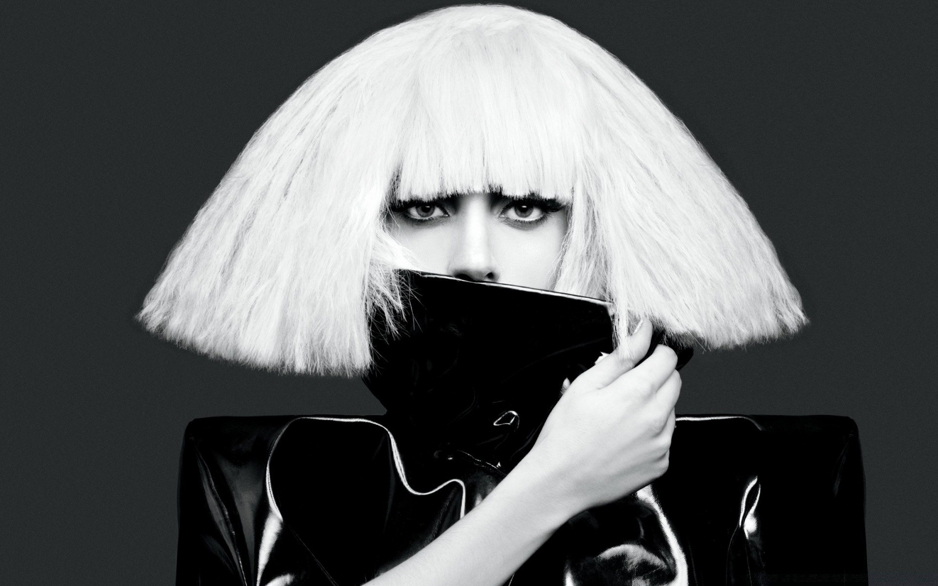 Monochrome portrait of a singer with an unusual hairstyle