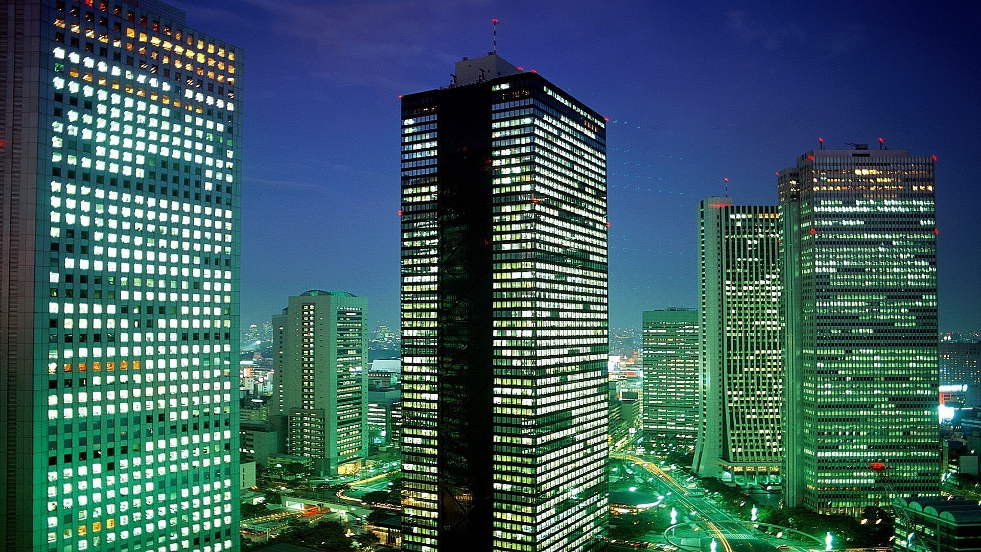 Night city lights skyscrapers