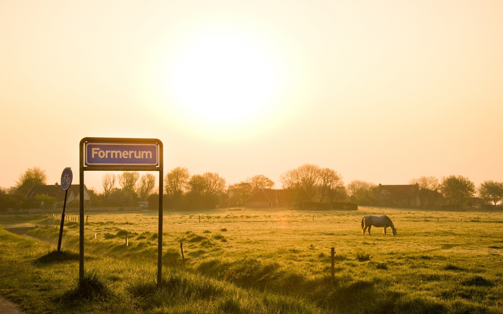 A horse in nature. Yellow sky
