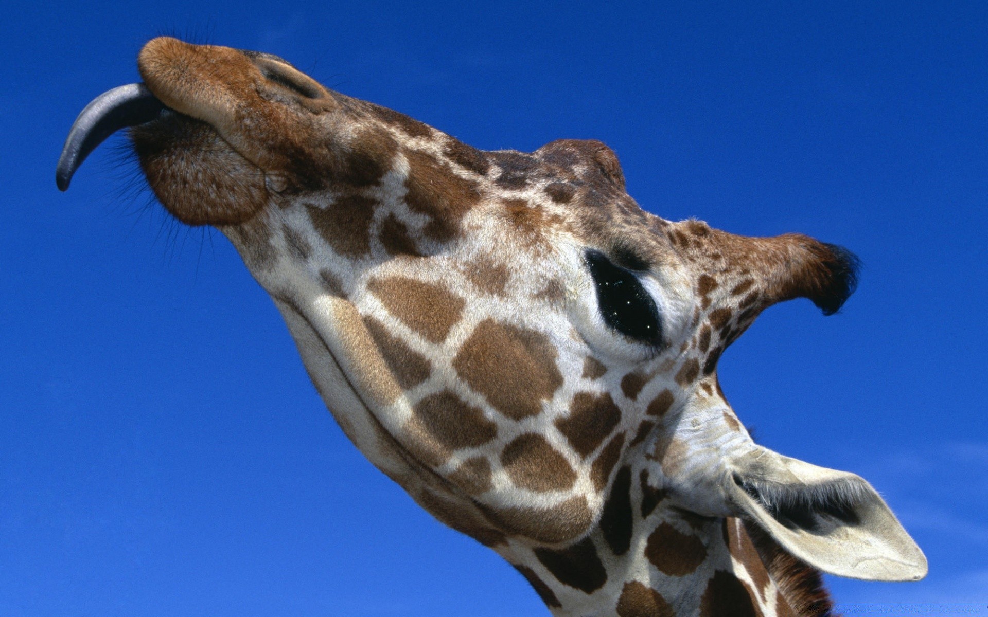Funny giraffe sticking out his tongue