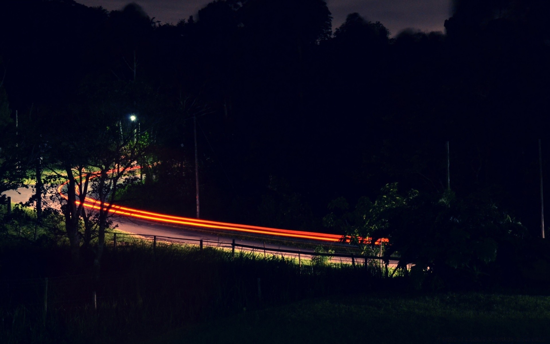 A red-lit highway at night