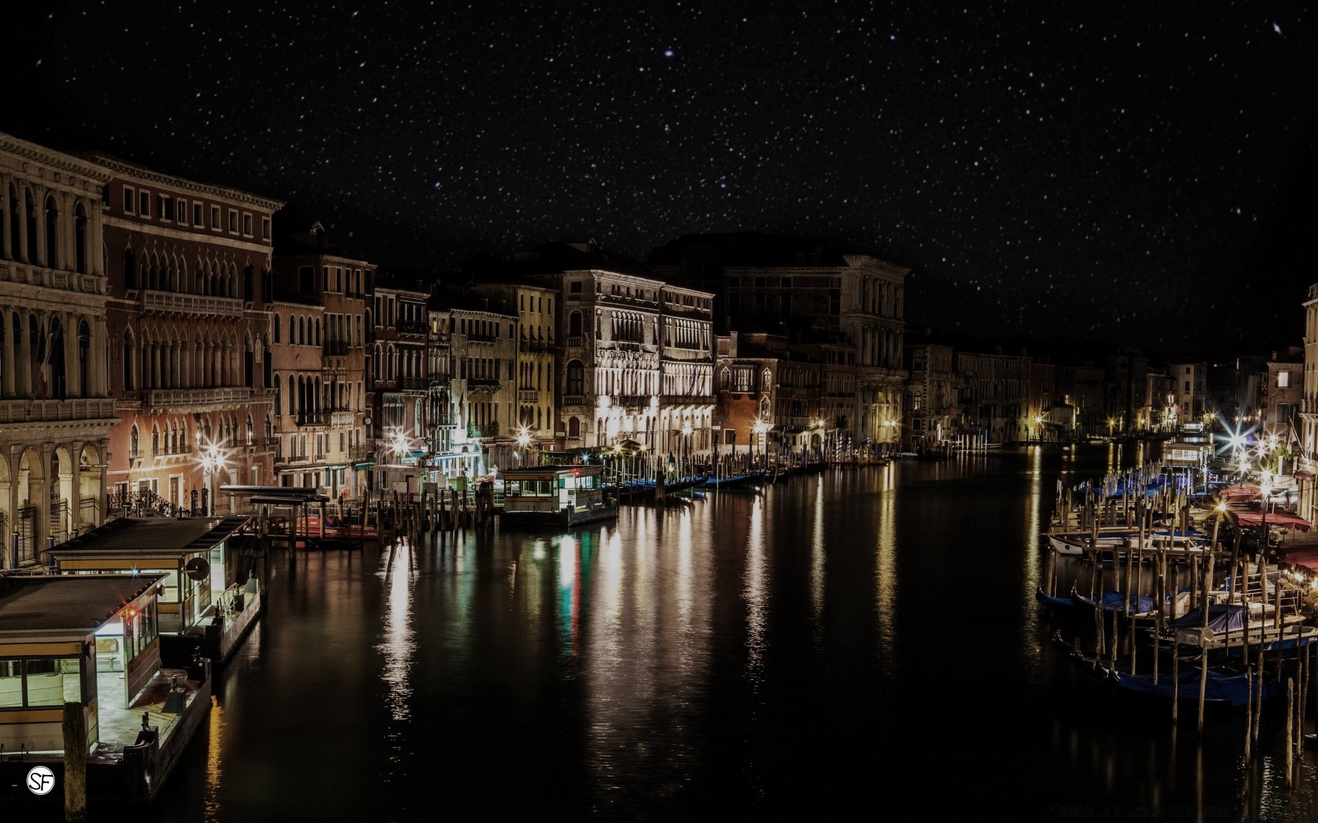 View of the night city standing on the river